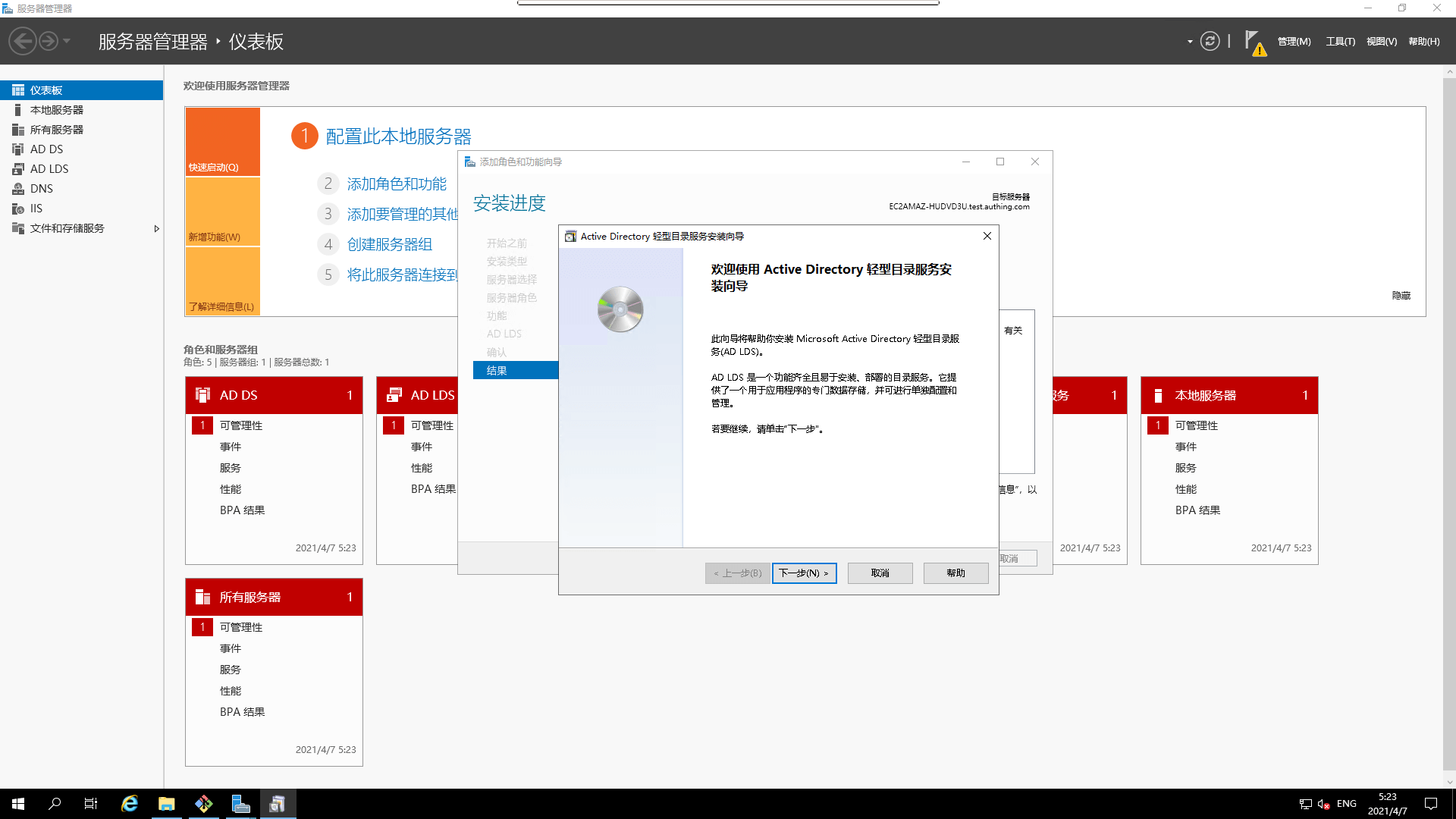 对于 AD 的相关操作, 前提就是构建一个 AD 服务, 而安装 AD 域服务就是在构建一个 AD 服务