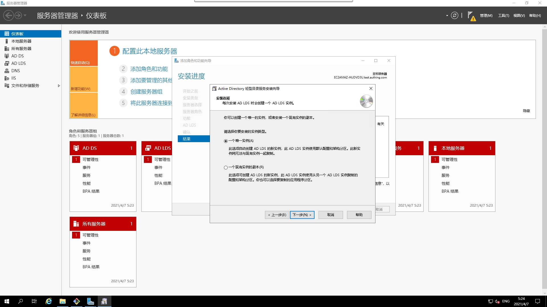 正如文档介绍: AD LDS 为应用程序特定的数据以及启用目录的应用程序(不需要 AD 域服务基础架构)提供存储. 一个服务器上可以存在多个 AD LDS 实例, 其中每个实例都可以有自己的架构