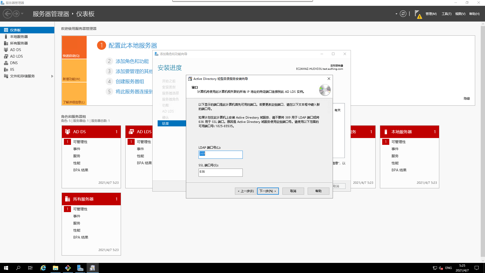 ldaps协议的开启, 需要安装并配置Active Directory 证书服务, 而现在并没有进行相关安装及配置,连接结果应该是失败的。