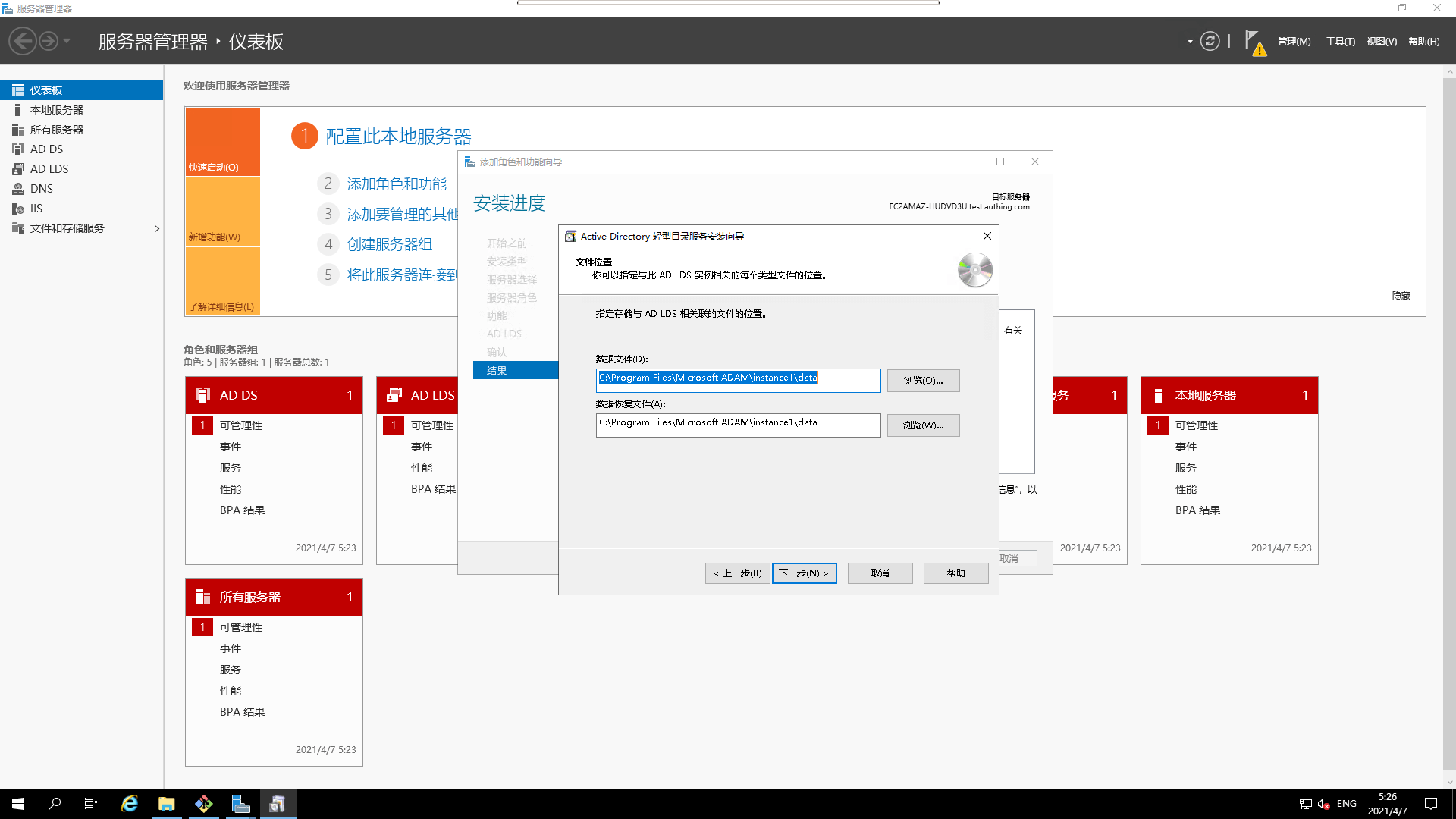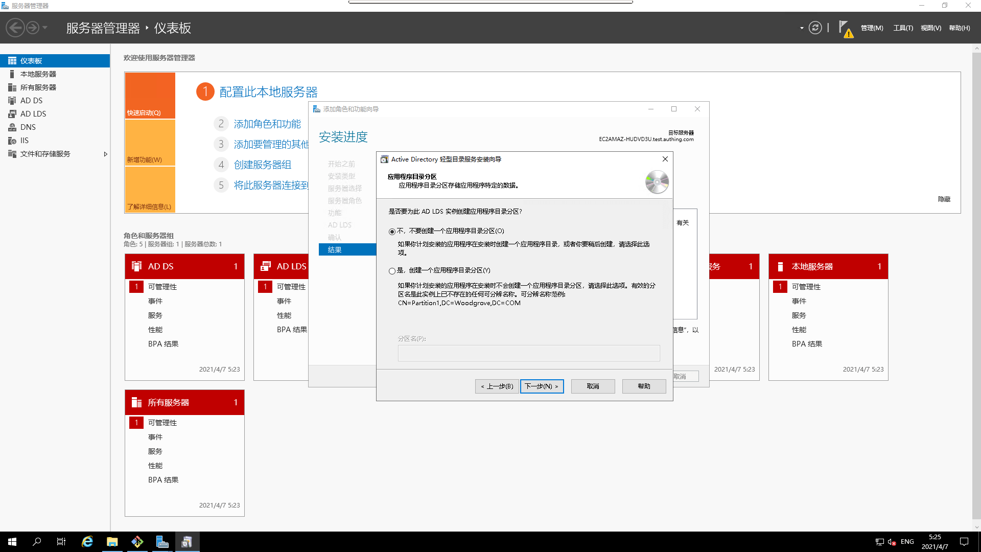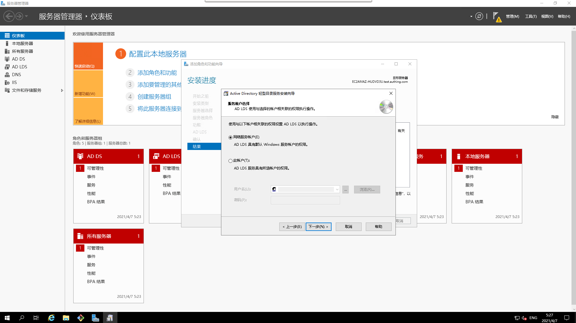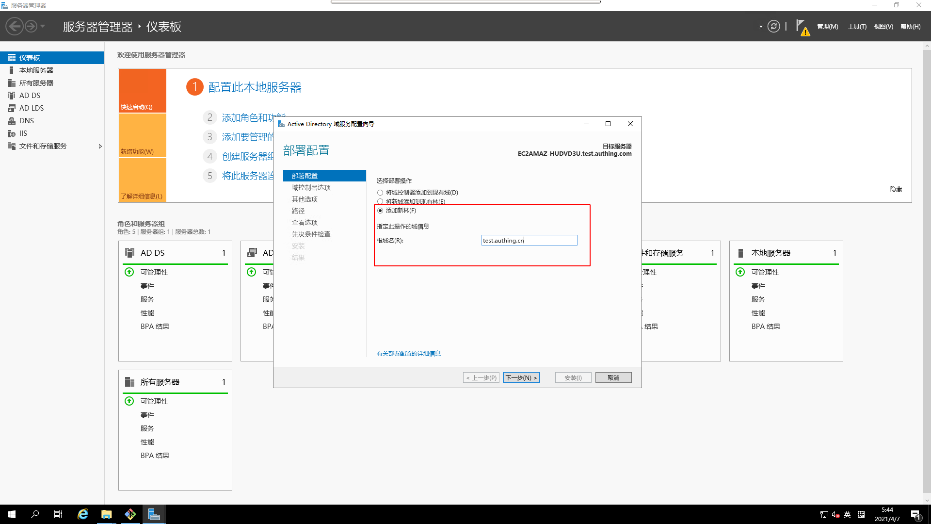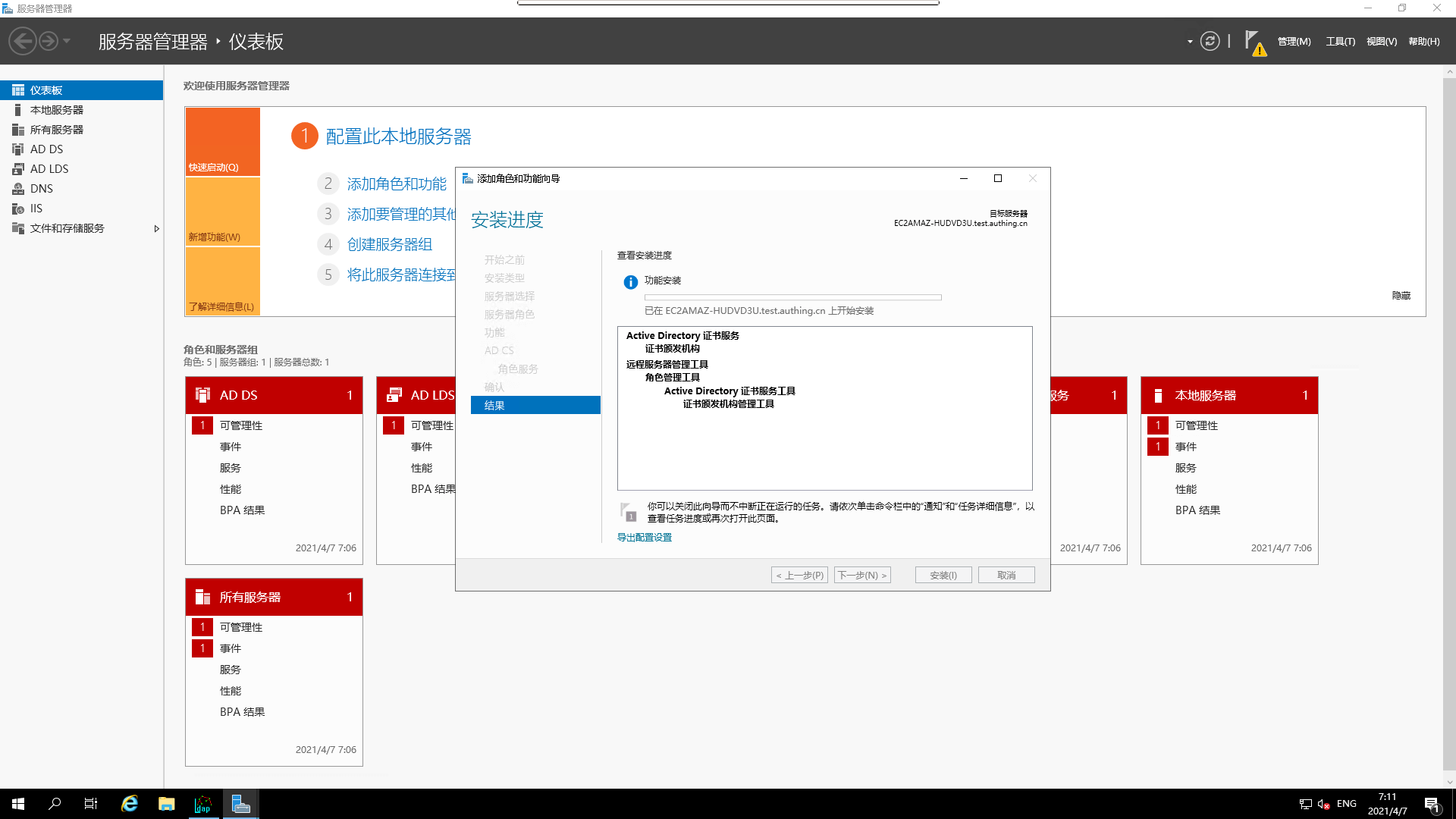配置 AD 域服务的安装, 此处只是提供安装过程, 以及需要注意的点。