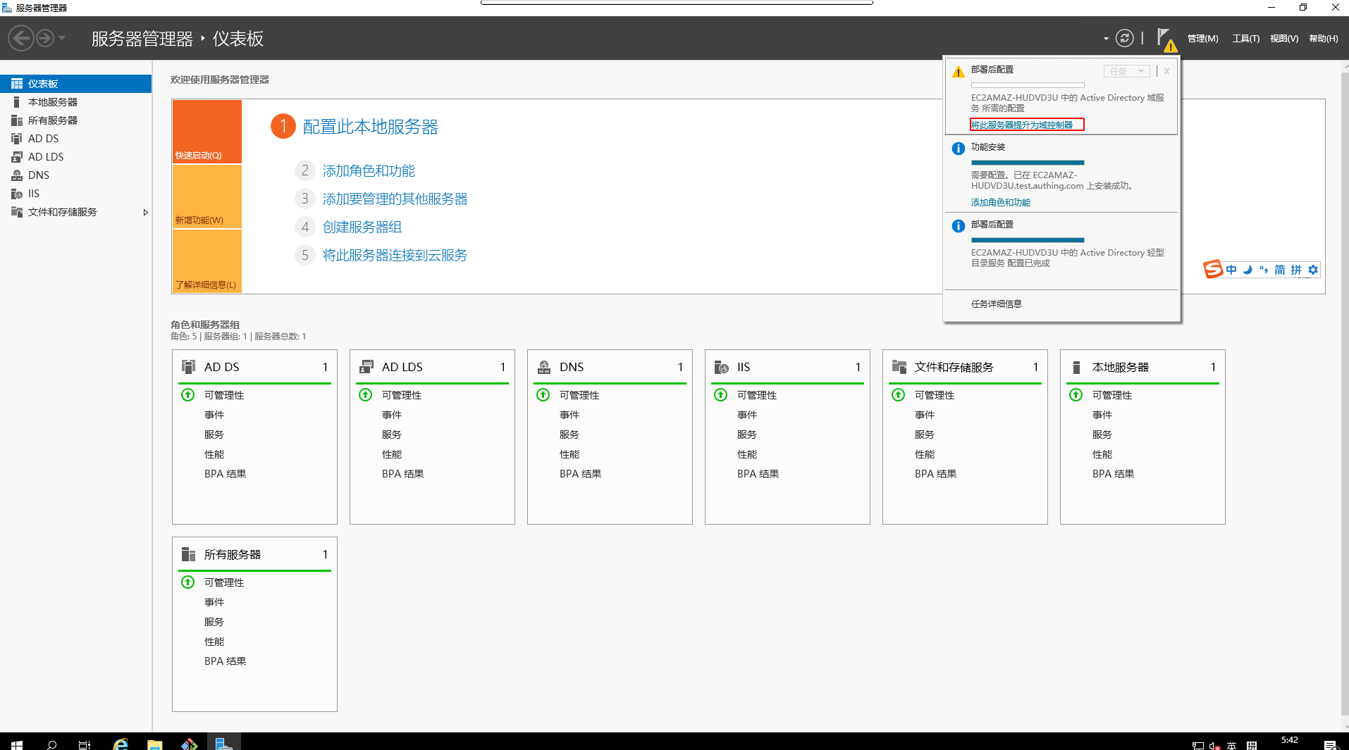 配置 AD 域服务 是为了完成 AD 域服务的初始化工作, 以完成后续核心功能的构建