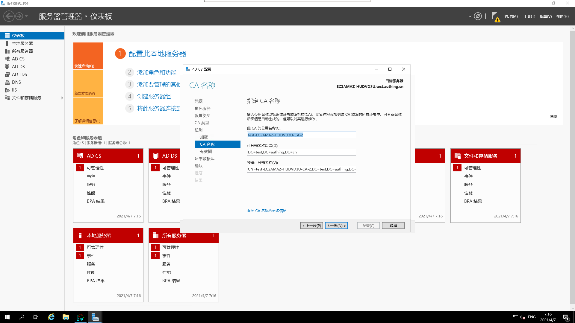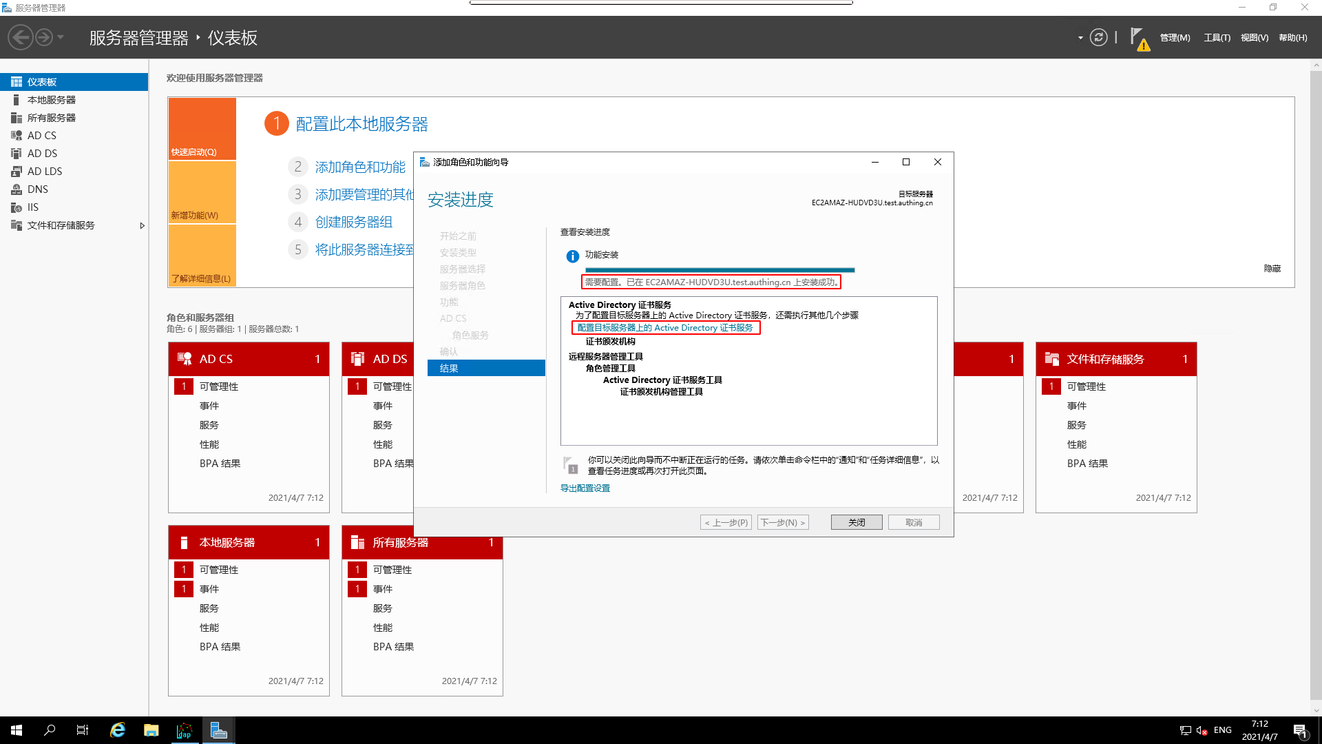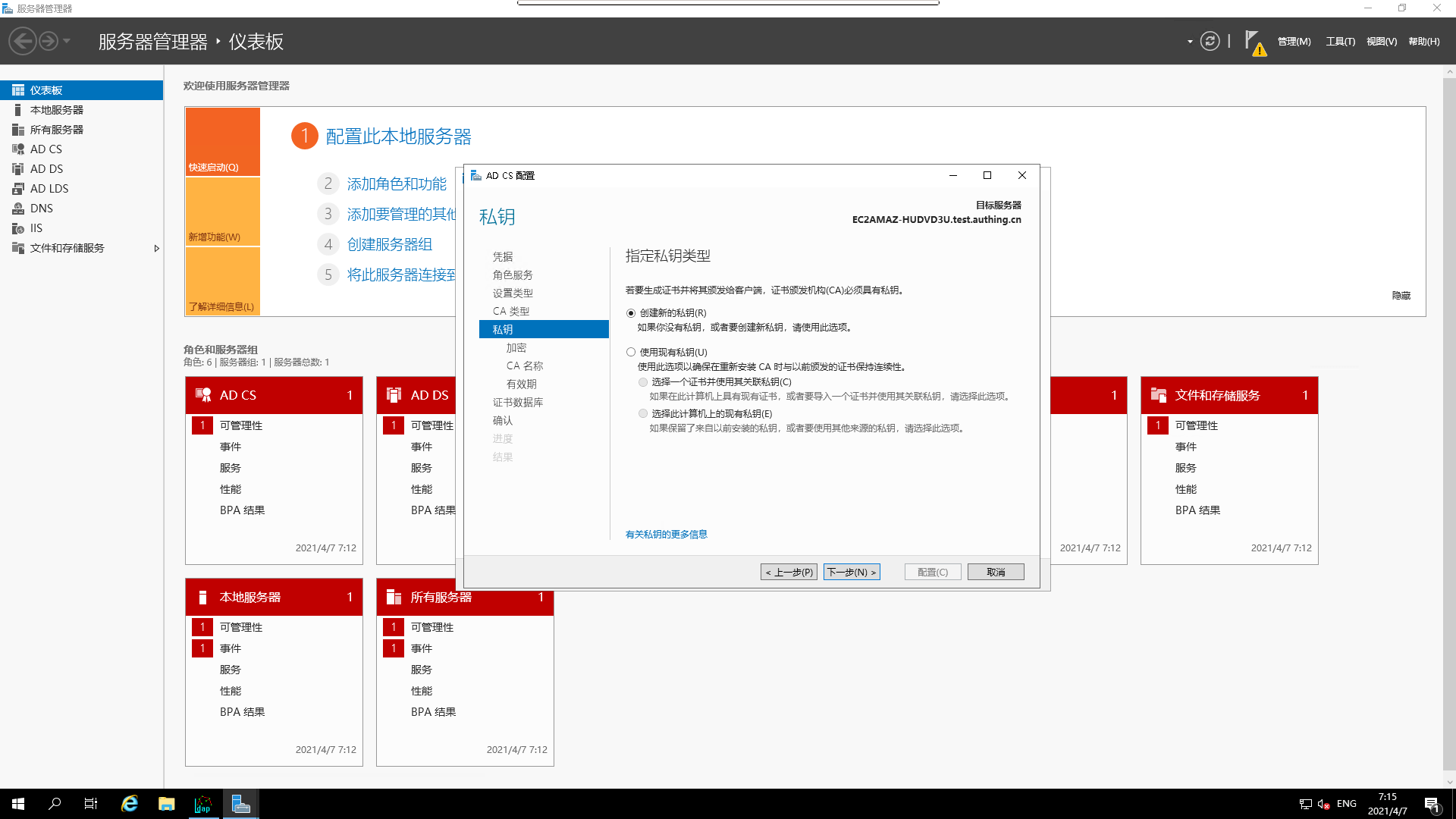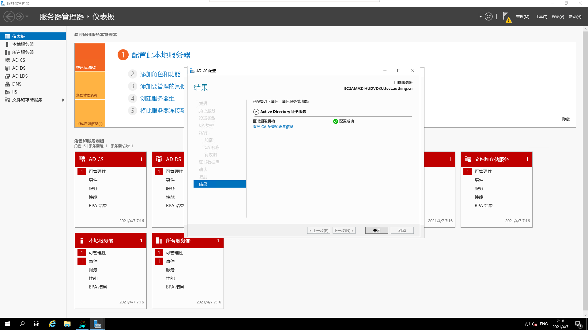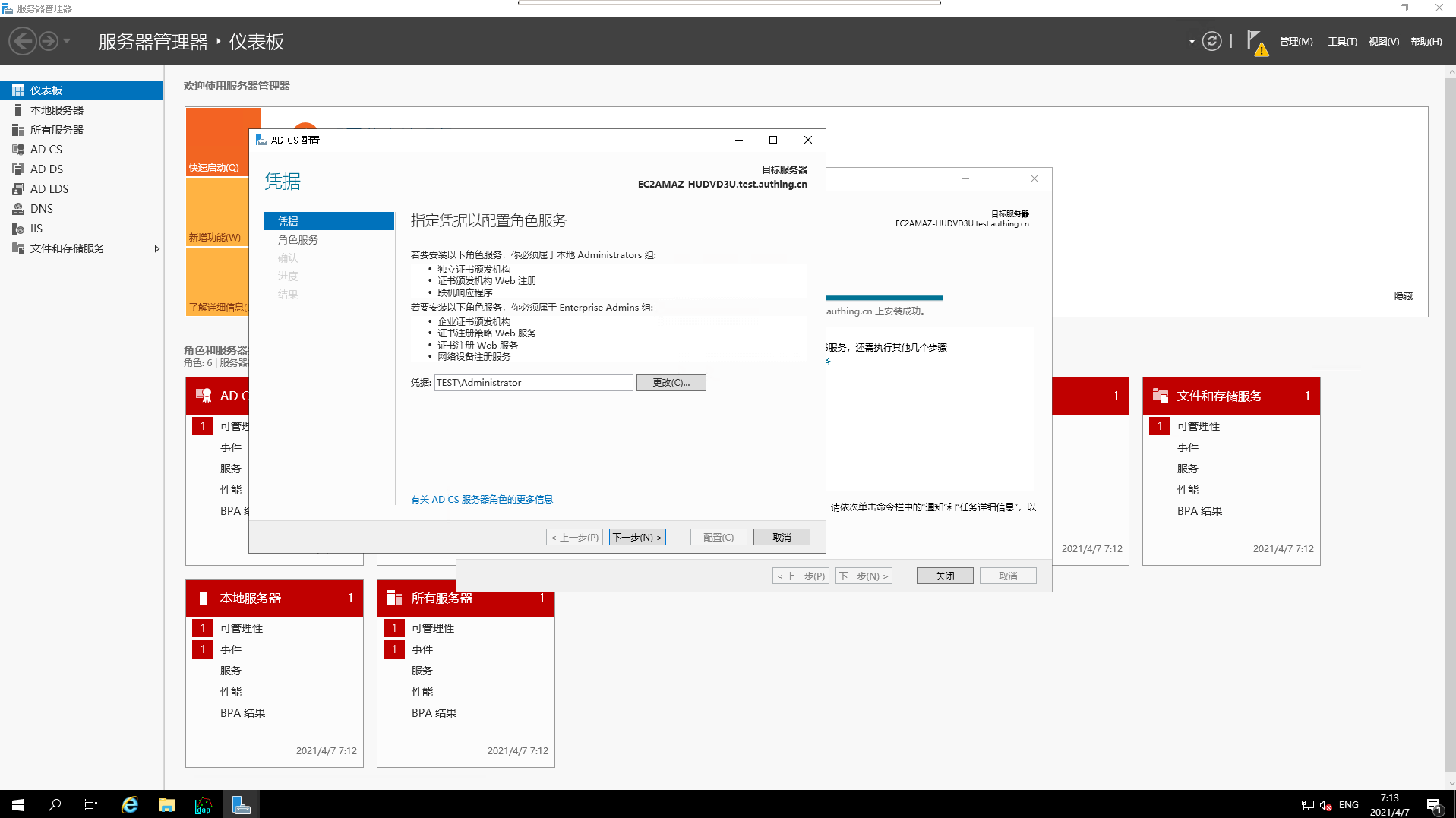 配置 AD CS 是为了完成 AD CS 的初始化工作, 以完成后续功能的构建。
