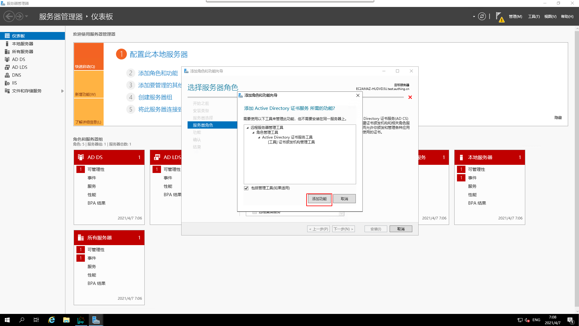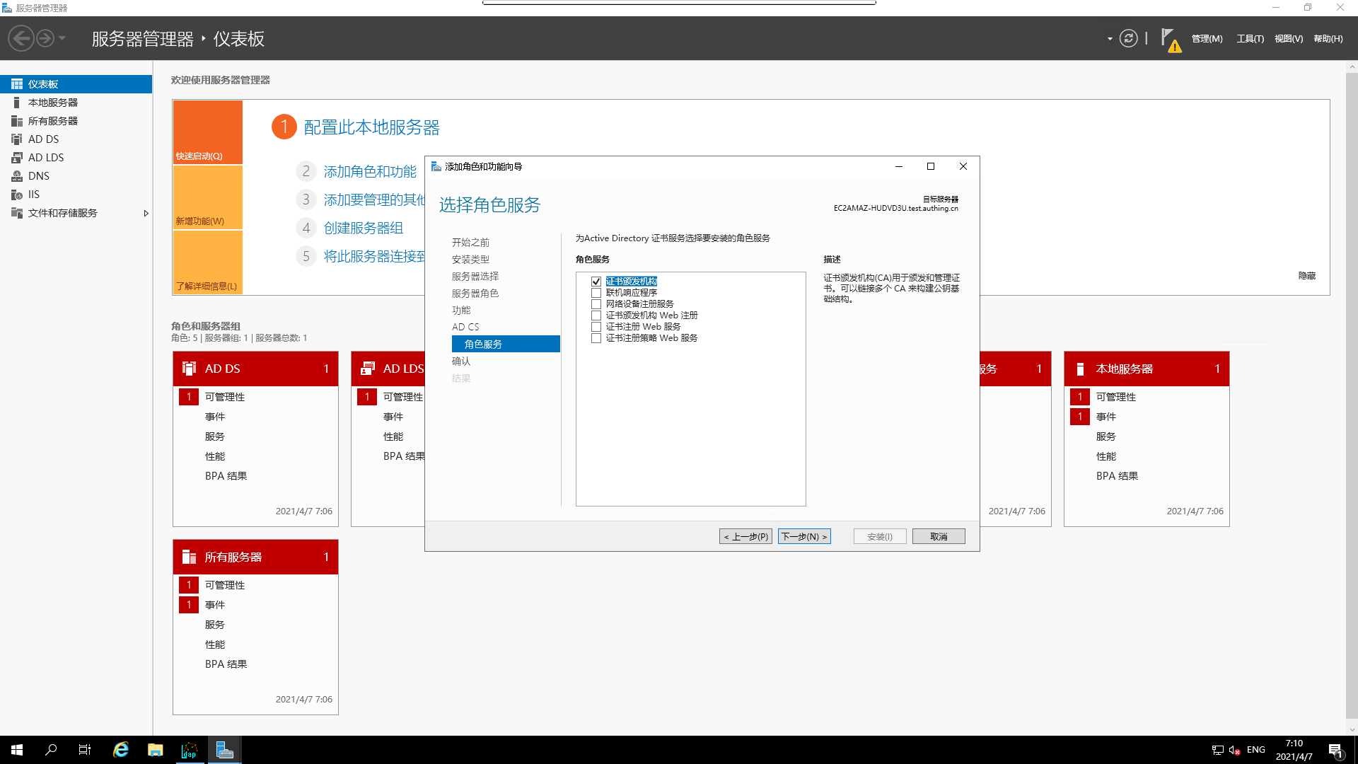 测试 AD CS 的相关配置是否出现问题, 是否是可用的。