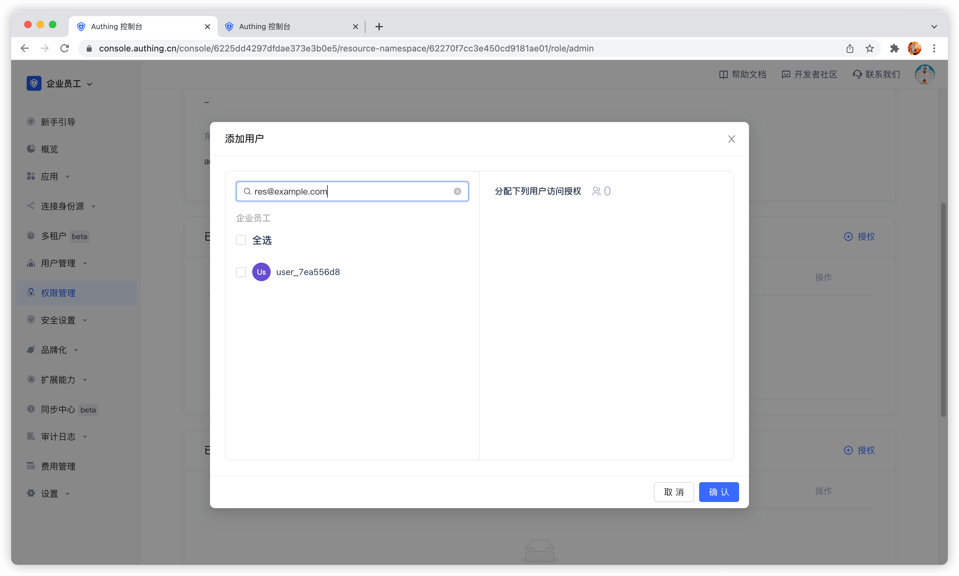 如果希望将多个资源授权给用户,可以继续添加授权规则。