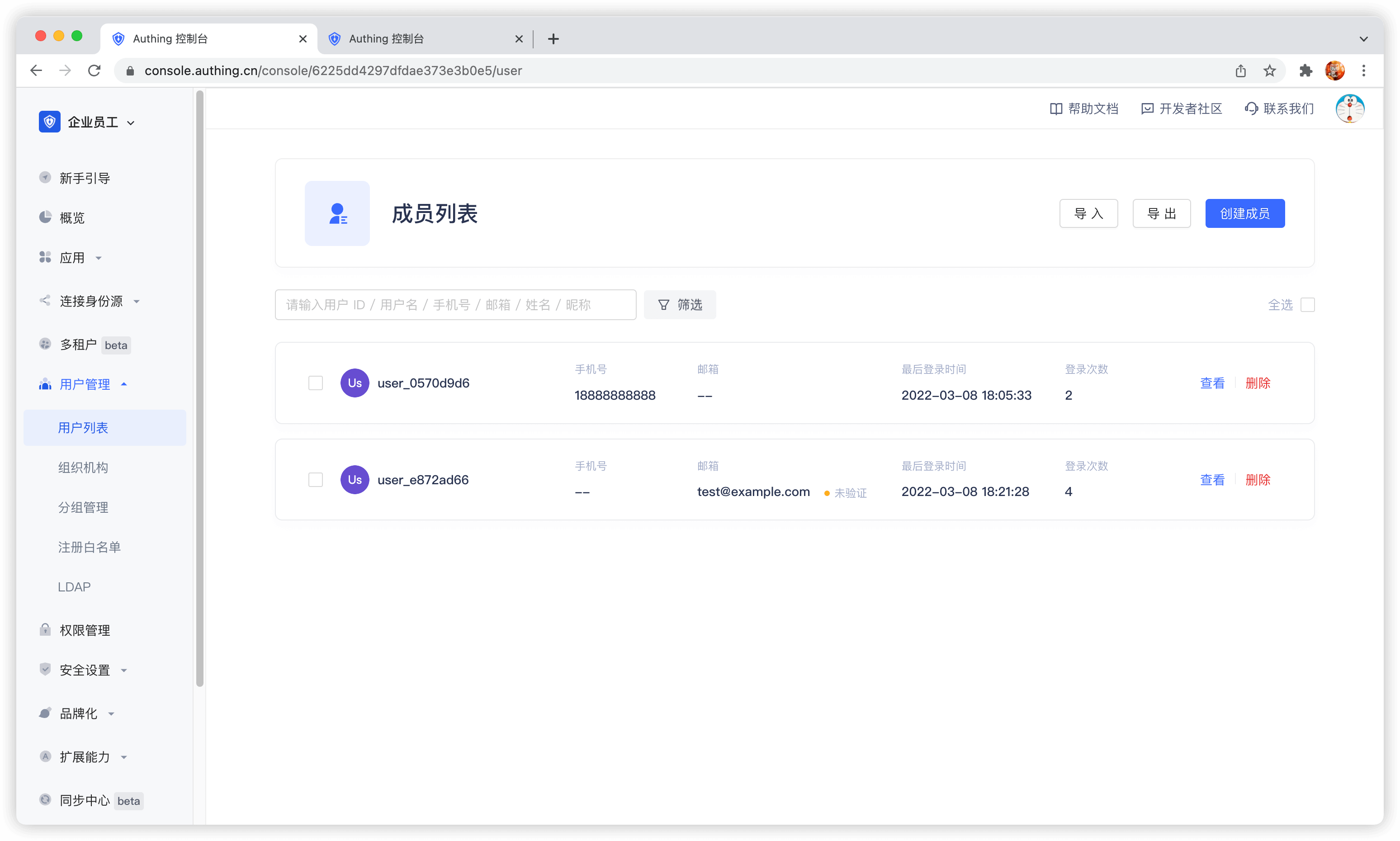 - 应用:作为管理员,你能够创建应用,应用就是你正在开发的应用项目在 Authing 的一个定义,例如正在实际开发一个「网络笔记」应用,你就应该在 Authing 创建一个名为「网络笔记」的应用。