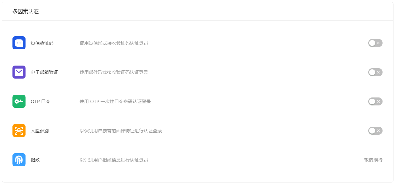 | 未验证邮箱登录时发送认证邮件 | 开启后,如果用户使用未经过验证的邮箱登录,Authing 将向该邮箱发送一封验证邮件,用户需要前往此邮箱点击认证链接后方可完成登录。 |