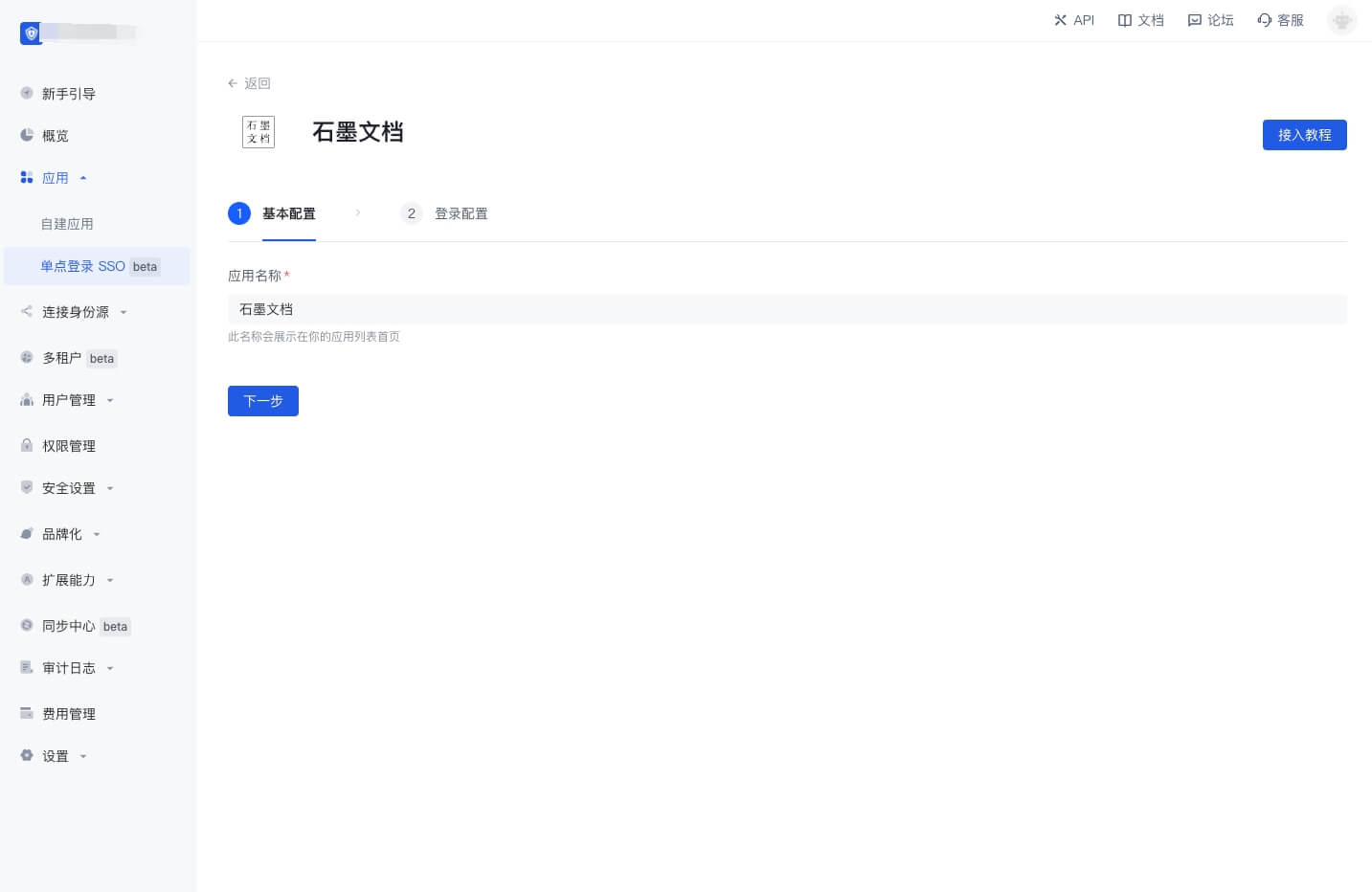 填写应用名称,点击「下一步」