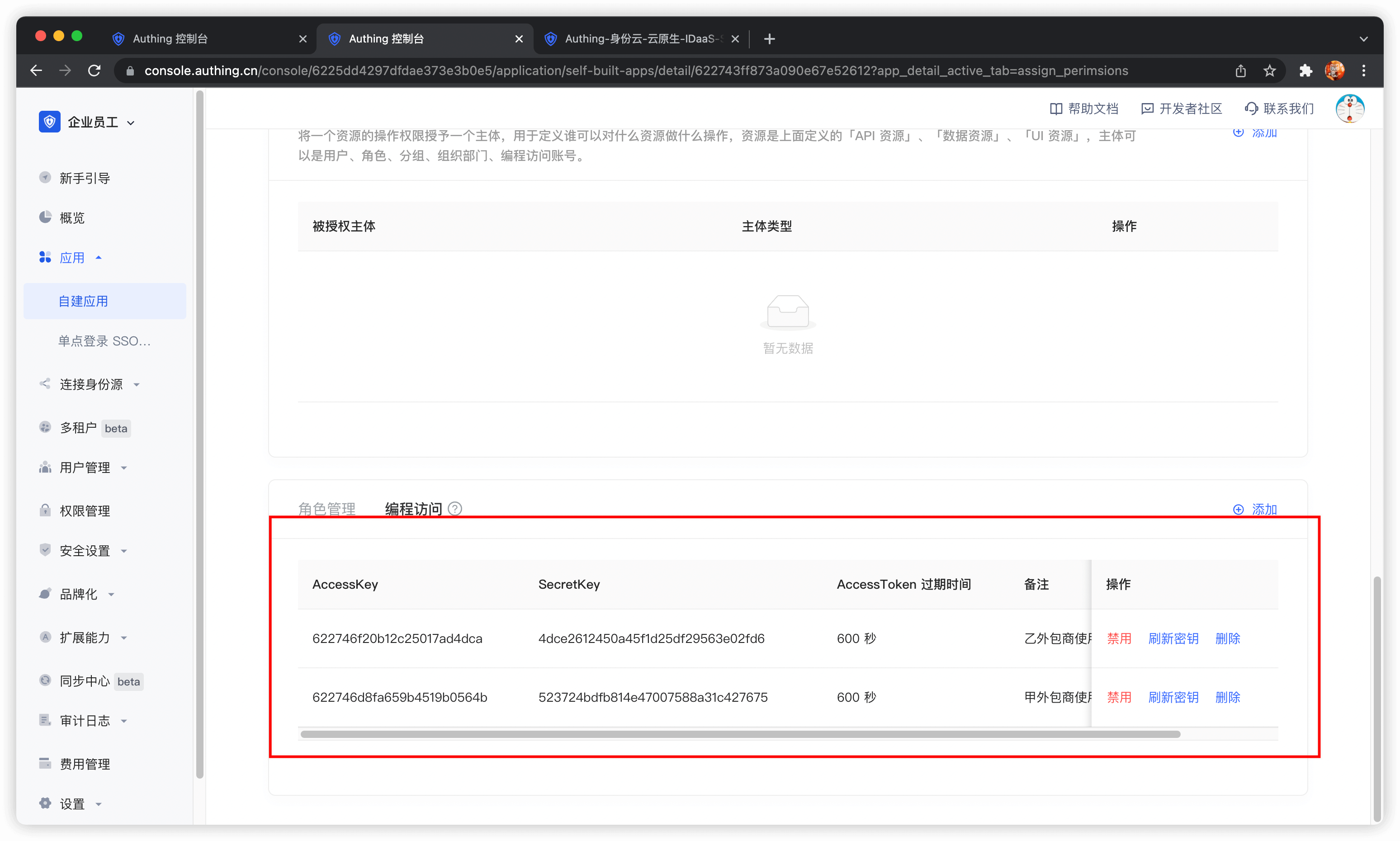 我们刚刚创建了两个编程访问账号,将来需要交给外包商。