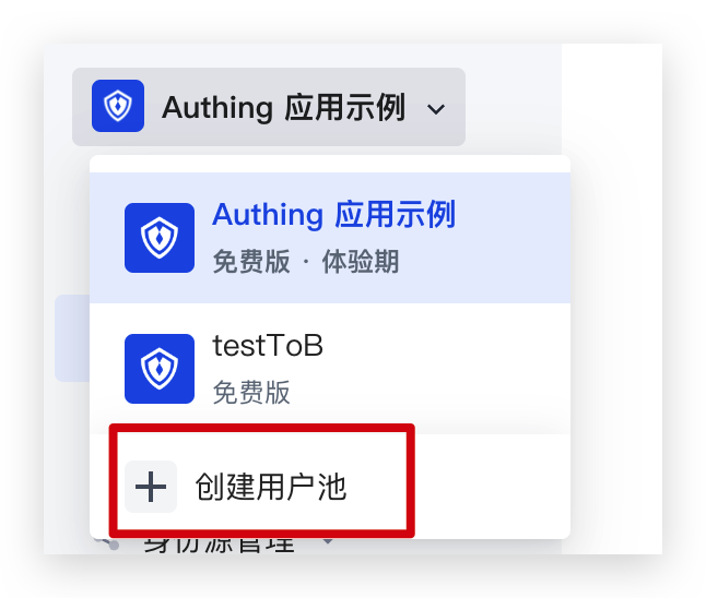 如果你已经有账号,想再创建一个用户池,可以点击左侧导航栏最上方的下拉按钮: