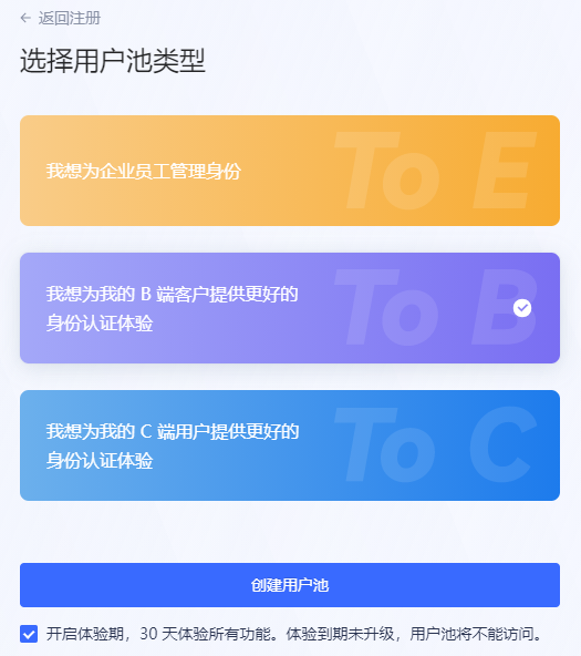 选择用户池类型: