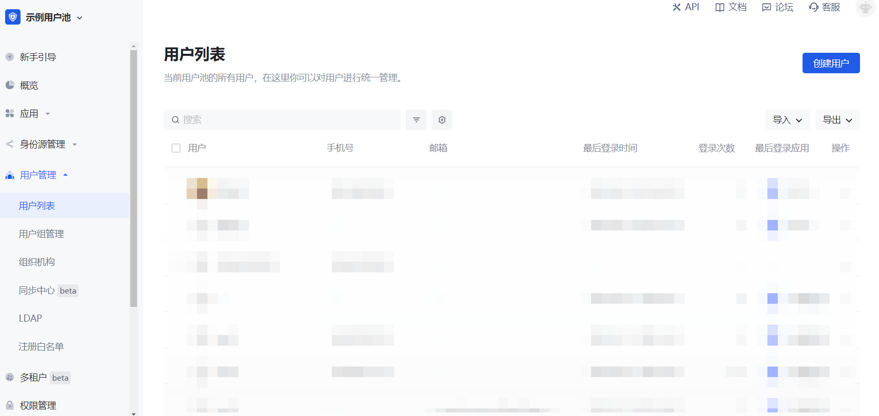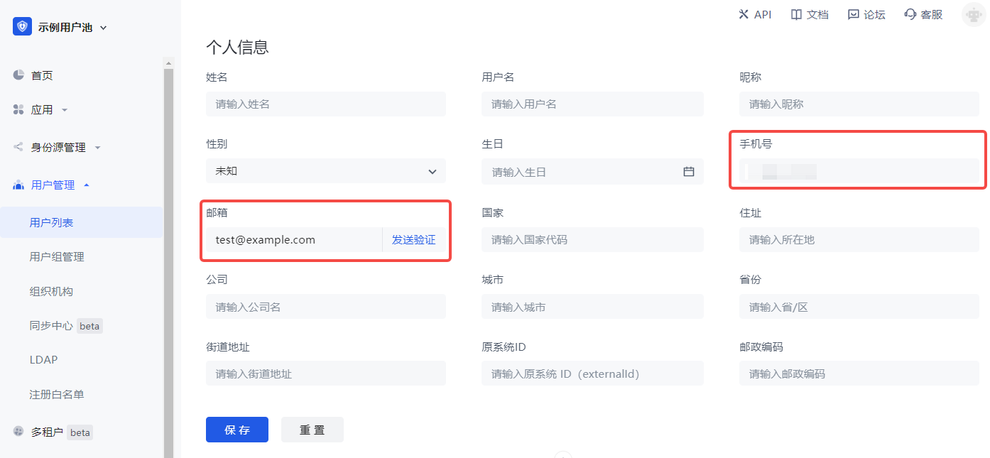 这时,你的用户列表中用户信息可能已经包含了相应用户的手机号、邮箱、用户名等信息: