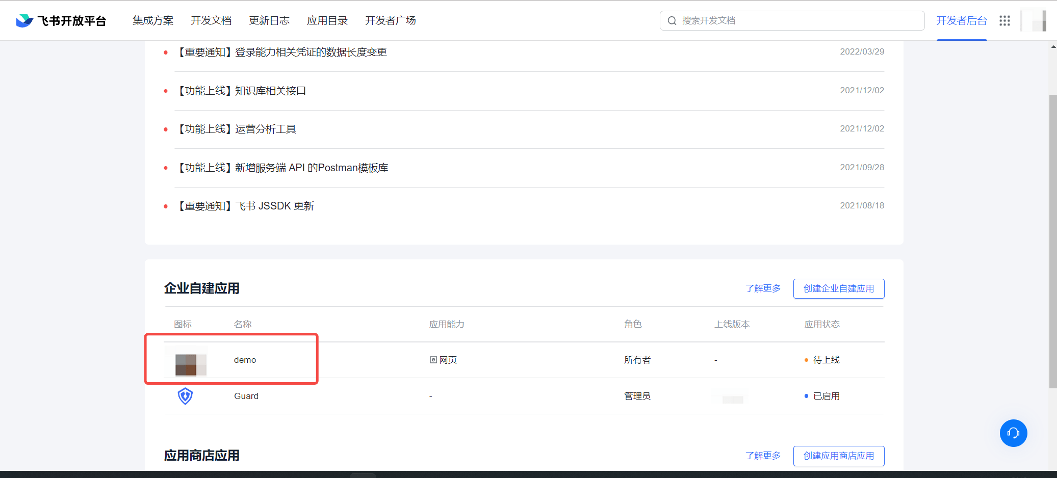 3.2 提交申请后,你的企业管理员会进行审核,审核结果会通过飞书和开发者后台发送给你。详情请见飞书文档 - 开发企业自建应用 (opens new window)