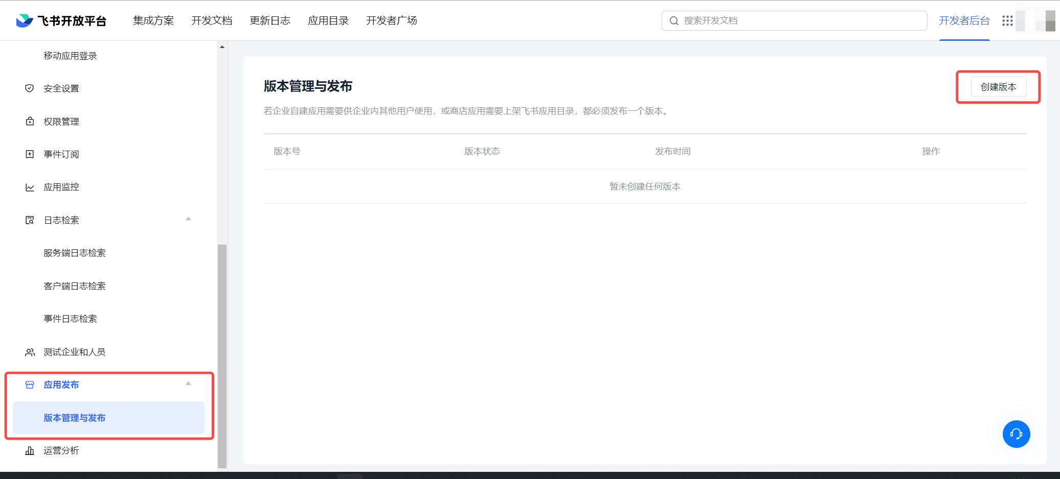 3.1 在飞书开发者后台,选择应用发布,在版本管理与发布中,点击创建版本,将创建好的应用进行发布,