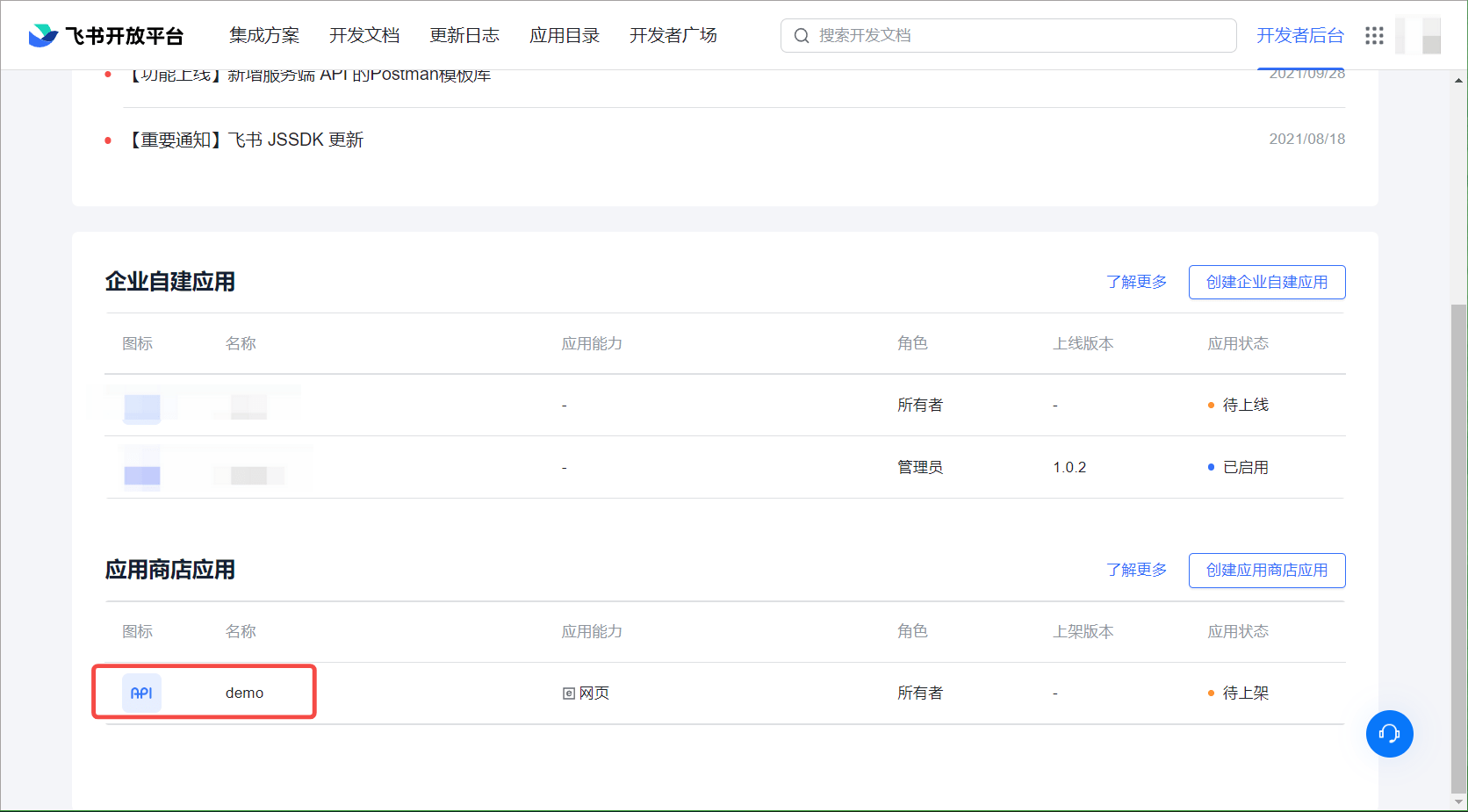 4.2 提交申请后,你的企业管理员会进行审核,审核结果会通过飞书和开发者后台发送给你。详情请见飞书文档 - 开发企业自建应用 (opens new window)