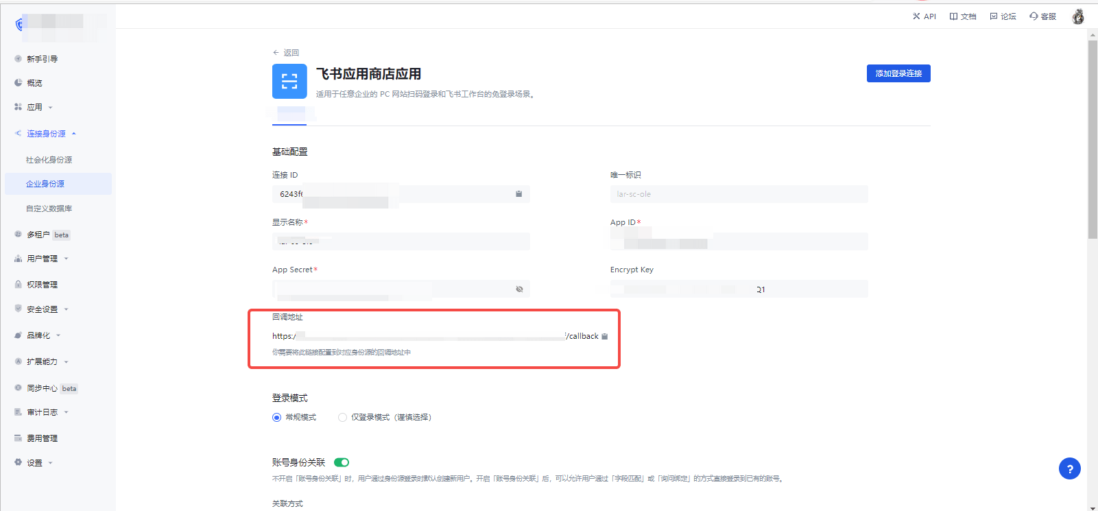 | 登录模式 | 开启「仅登录模式」后,只能登录既有账号,不能创建新账号,请谨慎选择。 |