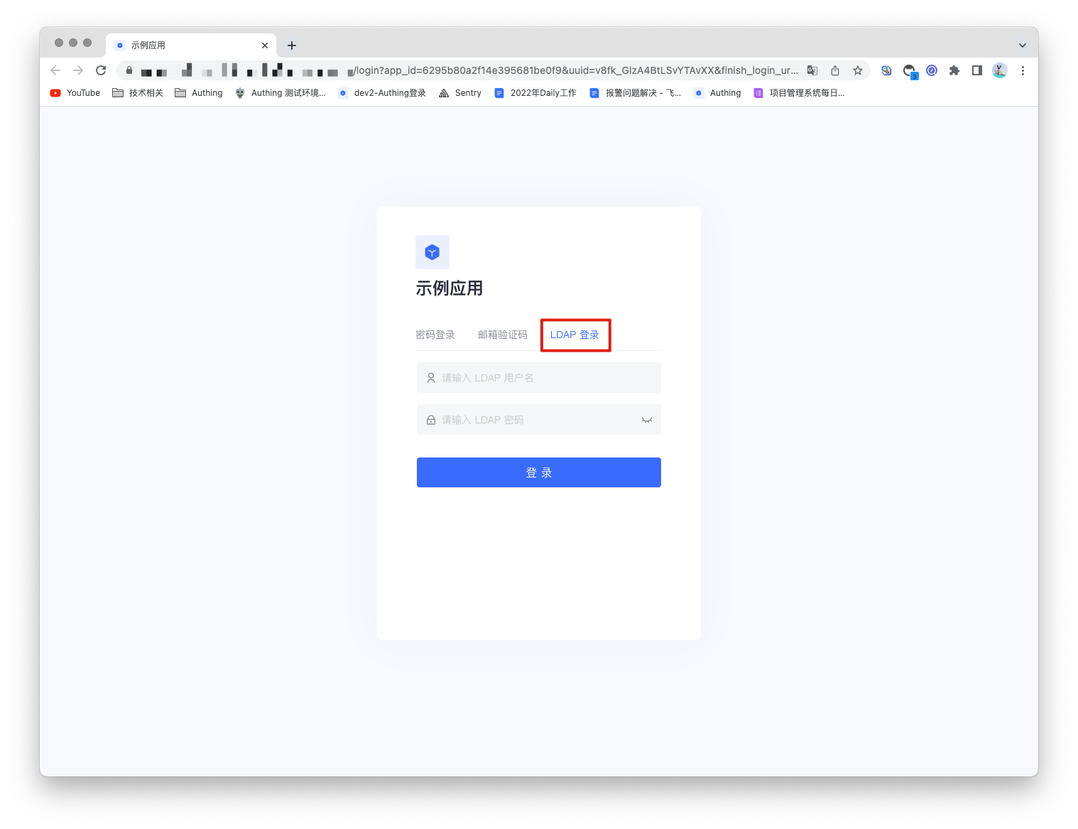 3.3 在登录页面体验 LDAP 的企业化登录。
