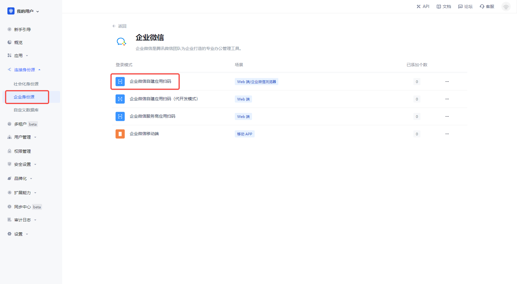 - 概述:企业微信自建应用扫码适用于在网页中通过扫码企业微信让用户进行登录的免登录场景。为企业实现以企业微信为身份源安全登录第三方应用或者网站。在 Authing 中配置并开启 企业微信自建应用扫码 的企业登录,即可实现通过 Authing 快速获取 企业微信 基本开放的信息和帮助用户实现免密登录功能。