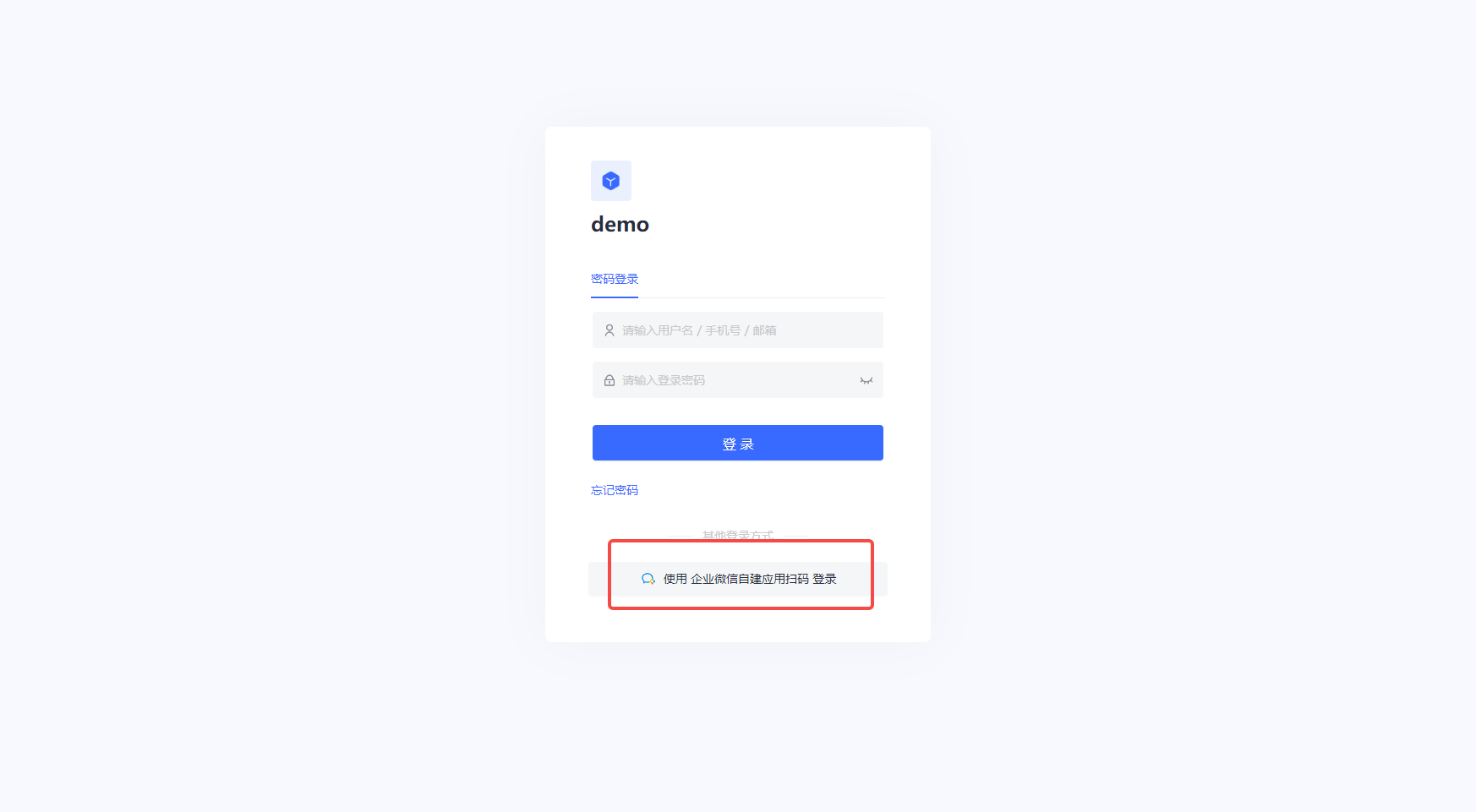 3.3 在登录页面体验 企业微信内部应用扫码登录(代开发模式) 第三方登录