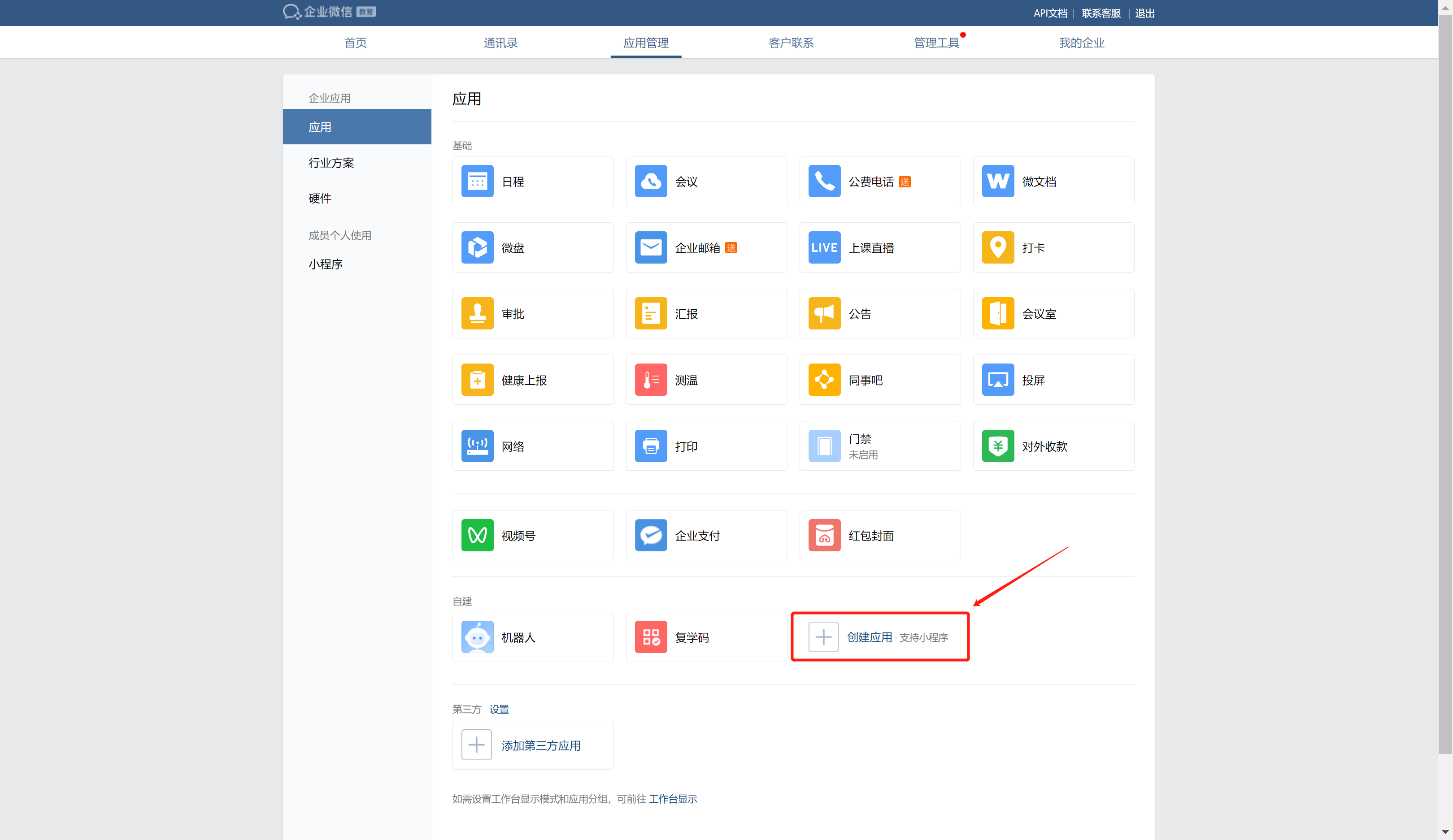 - 如果你未开通 企业微信管理员 账号,请先前往 企业微信管理员后台 (opens new window) 进行注册;