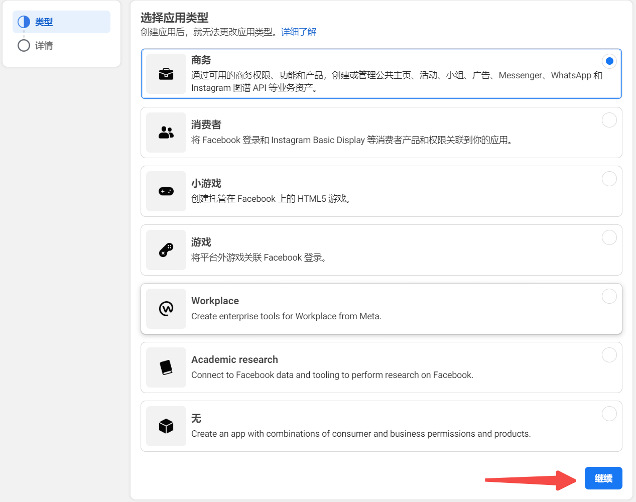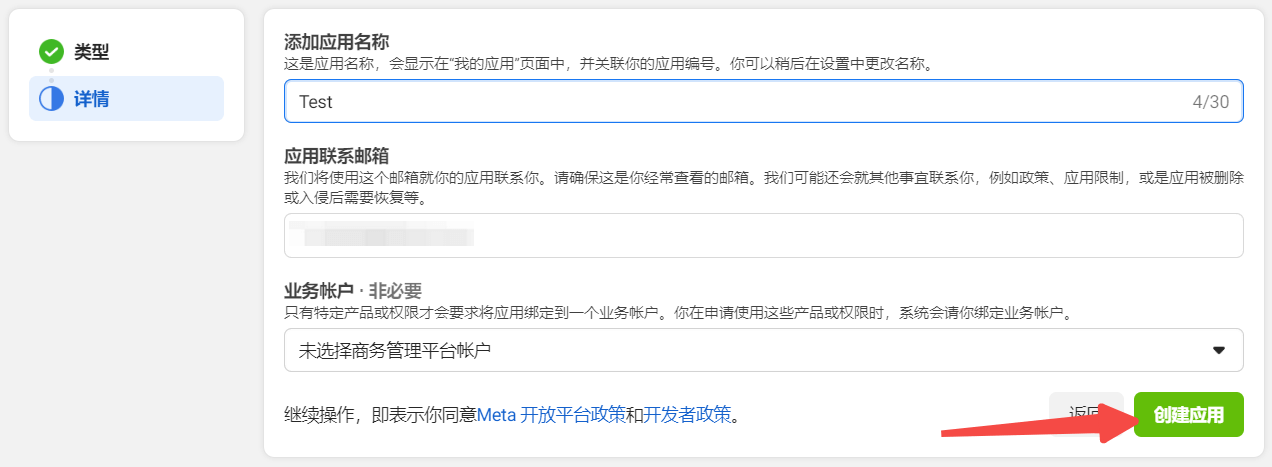 ¶ 第一步:在 Facebook 开发者平台创建应用
