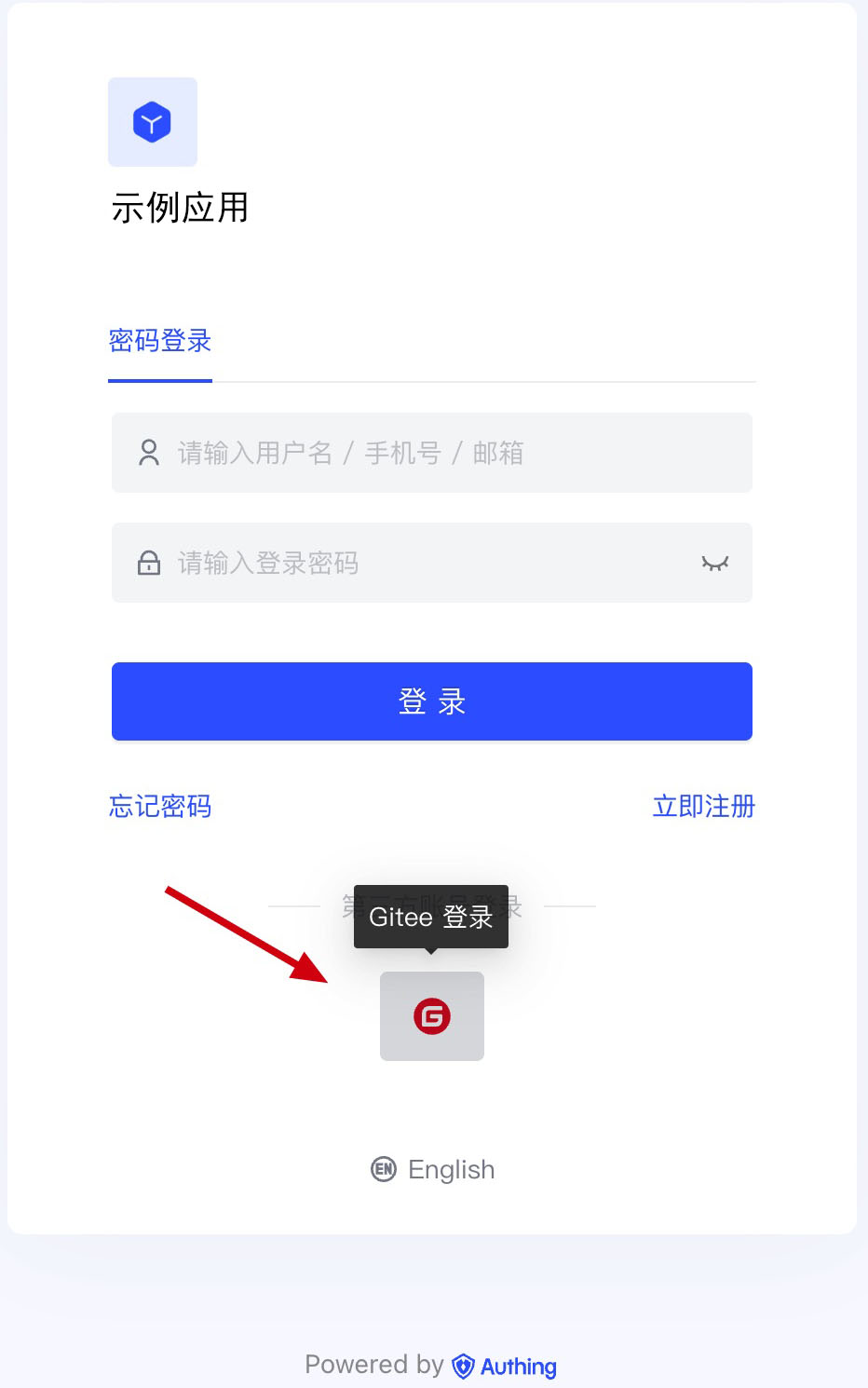 - 概述:Gitee 社会化登录是用户以 Gitee 为身份源安全登录第三方应用或者网站。在 Authing 中配置并开启 Gitee 的社会化登录,即可实现通过 Authing 快速获取 Gitee 基本开放的信息和帮助用户实现免密登录功能。