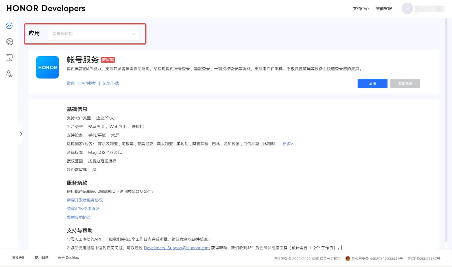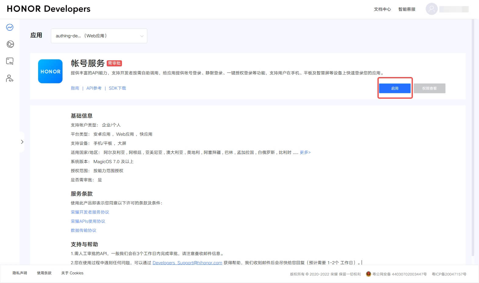 回到 账号服务页面 点击 启用