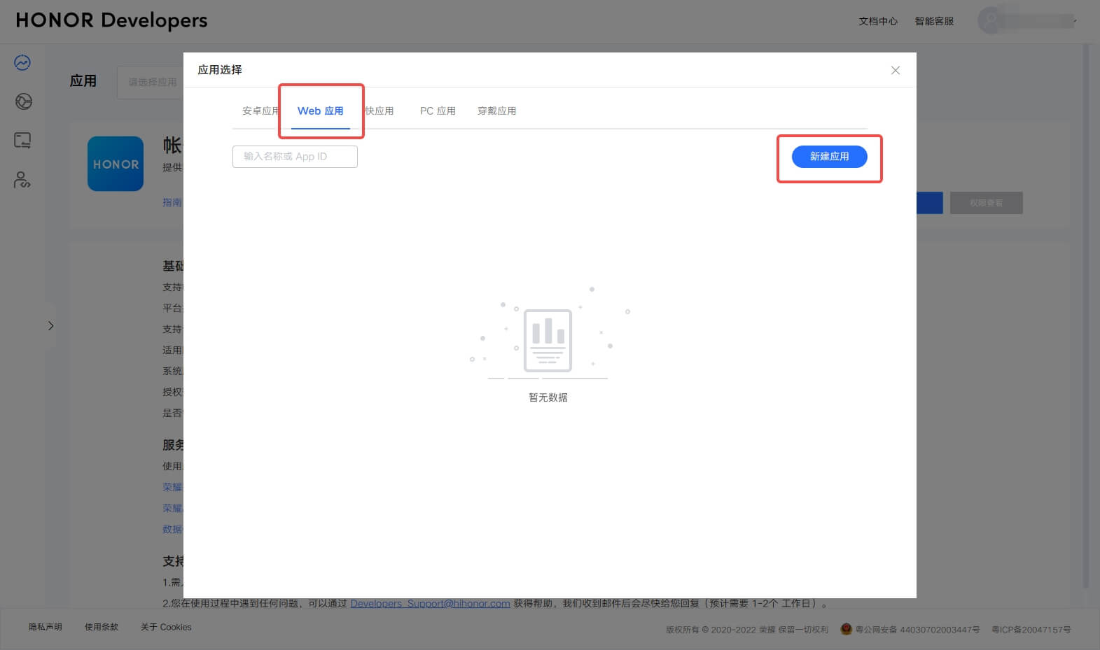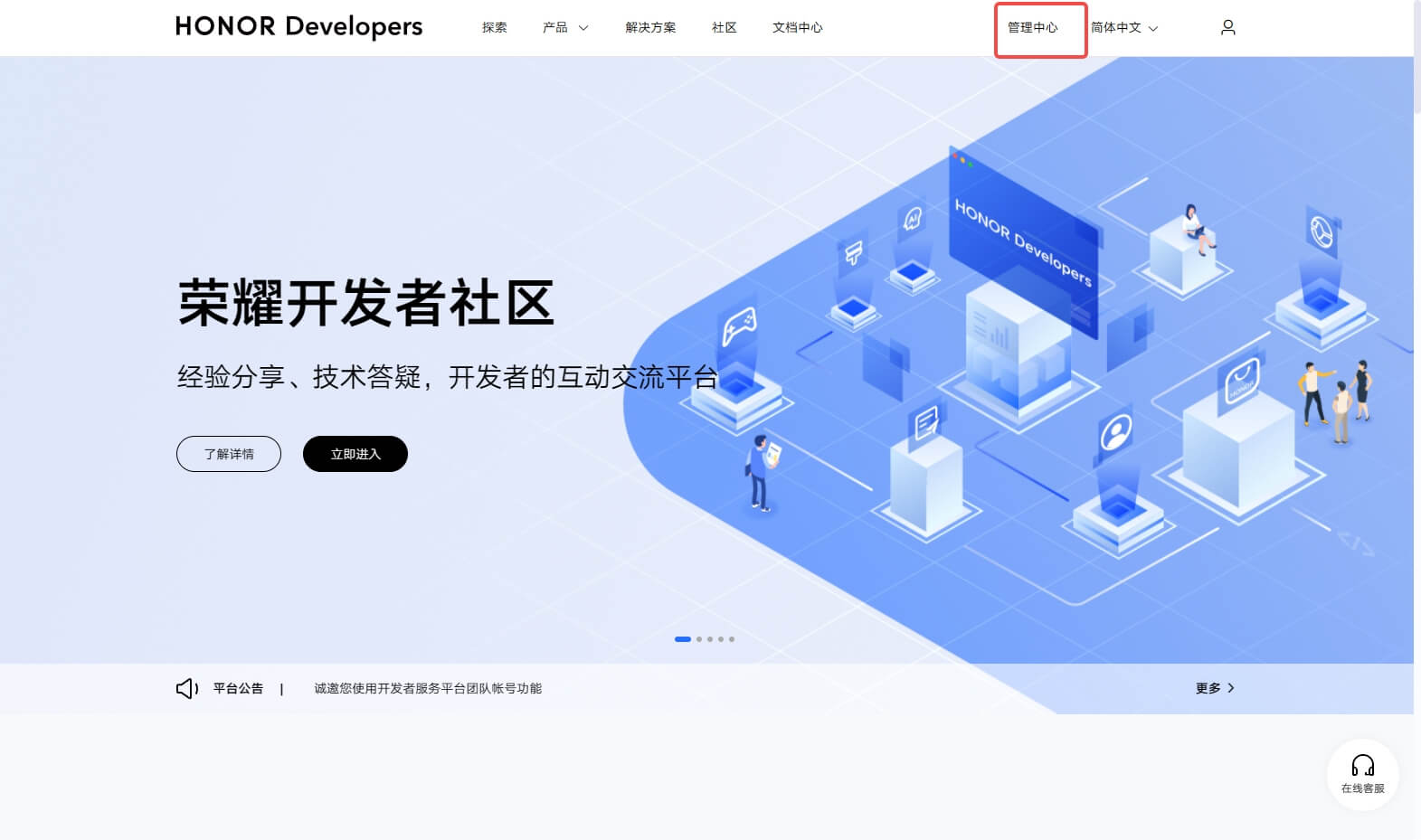 登录荣耀开发者服务平台 (opens new window),点击 管理中心:
