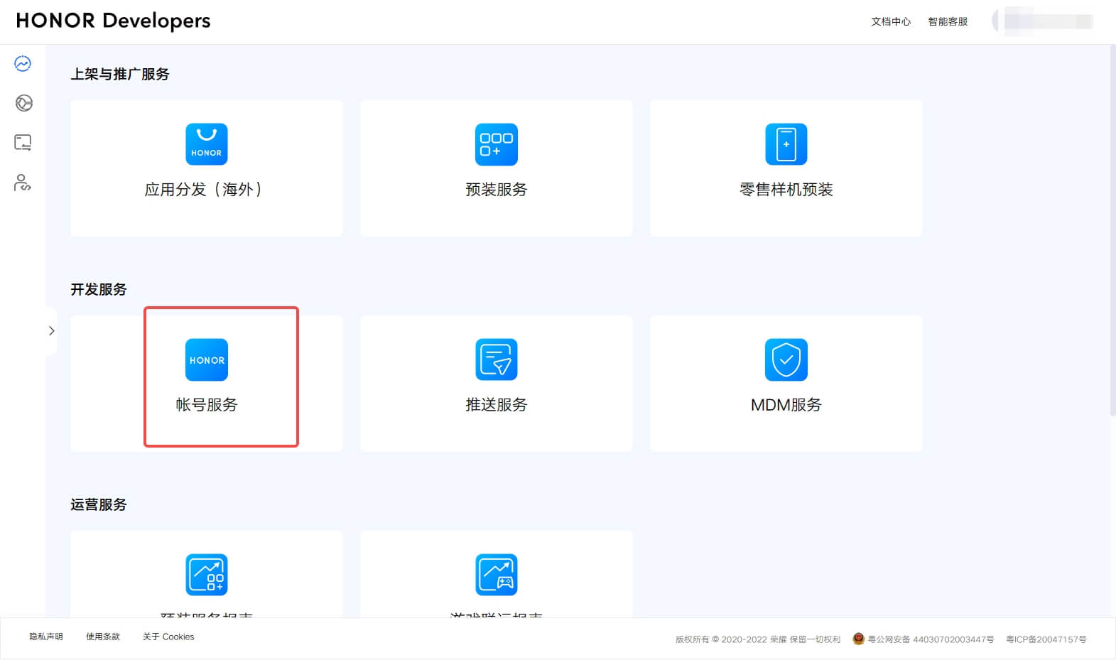 在管理中心页面,点击帐号服务: