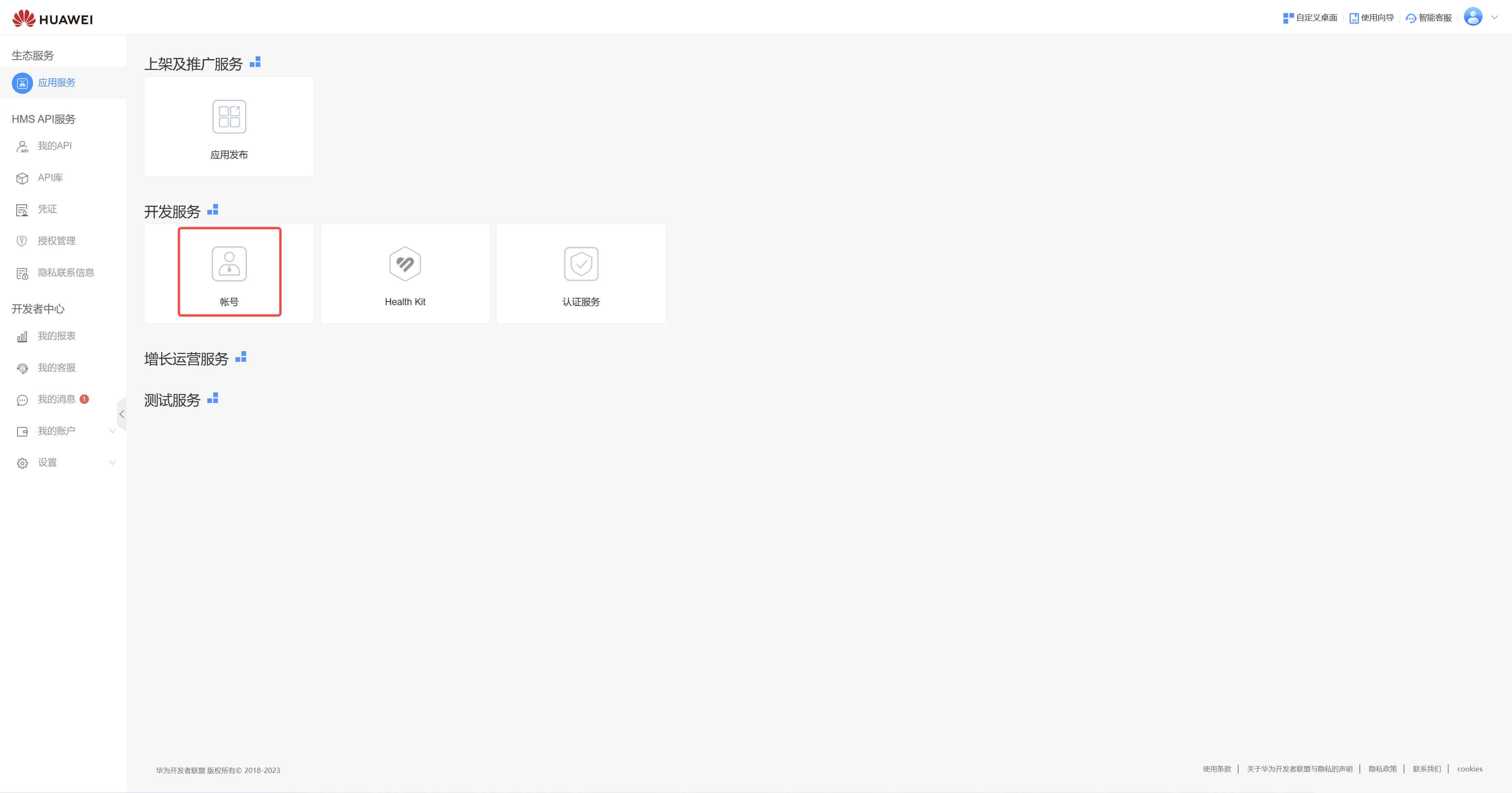 登录华为开发者联盟官网 (opens new window),点击 管理中心: