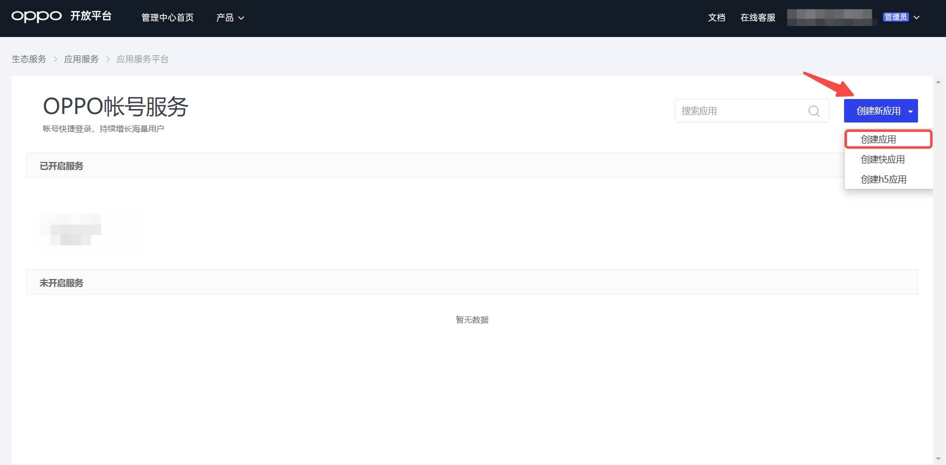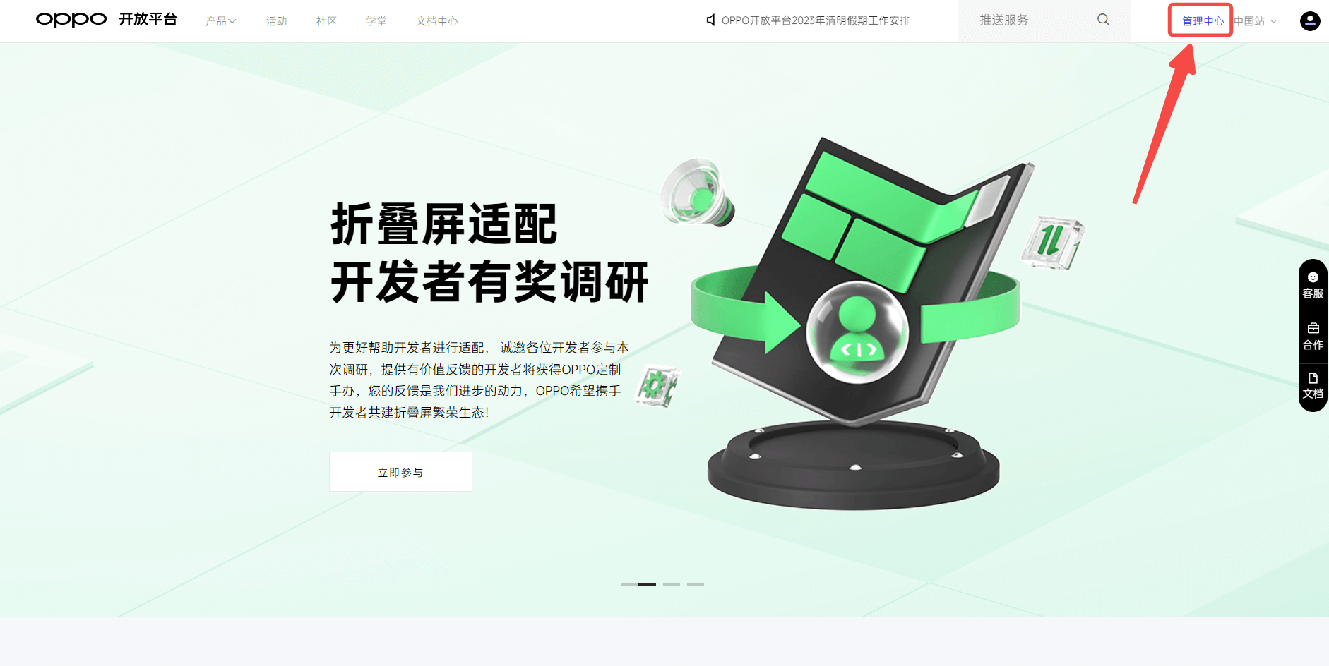 登录OPPO 开放平台 (opens new window),点击 管理中心: