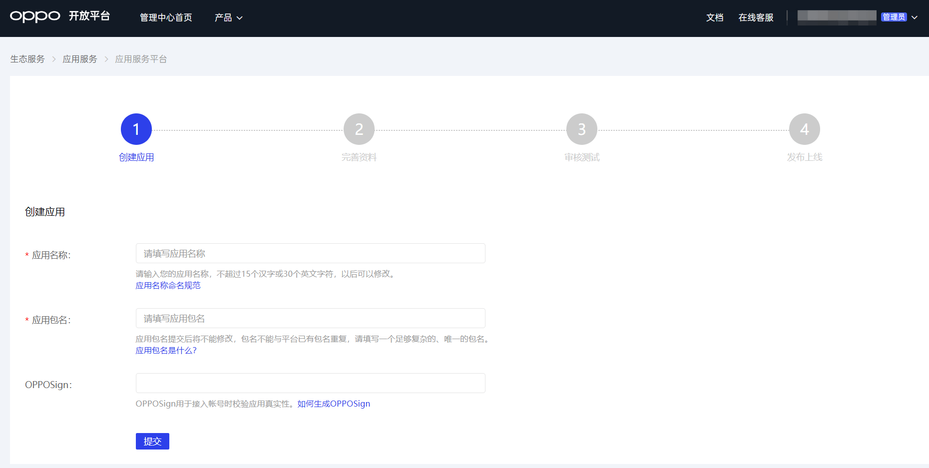 ¶ 第一步:在 OPPO 创建一个应用
