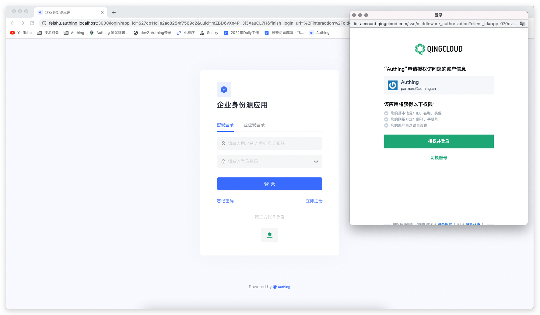 - 概述:青云 QingCloud 是一家技术领先的企业级全栈云 ICT 服务商和解决方案提供商。 QingCloud 社会化登录是用户以 QingCloud 为身份源安全登录到第三方应用或者网站。在 Authing 中配置并开启 QingCloud 的社会化登录,即可实现通过 Authing 快速获取 QingCloud 基本开放的信息和帮助用户实现免密登录功能。