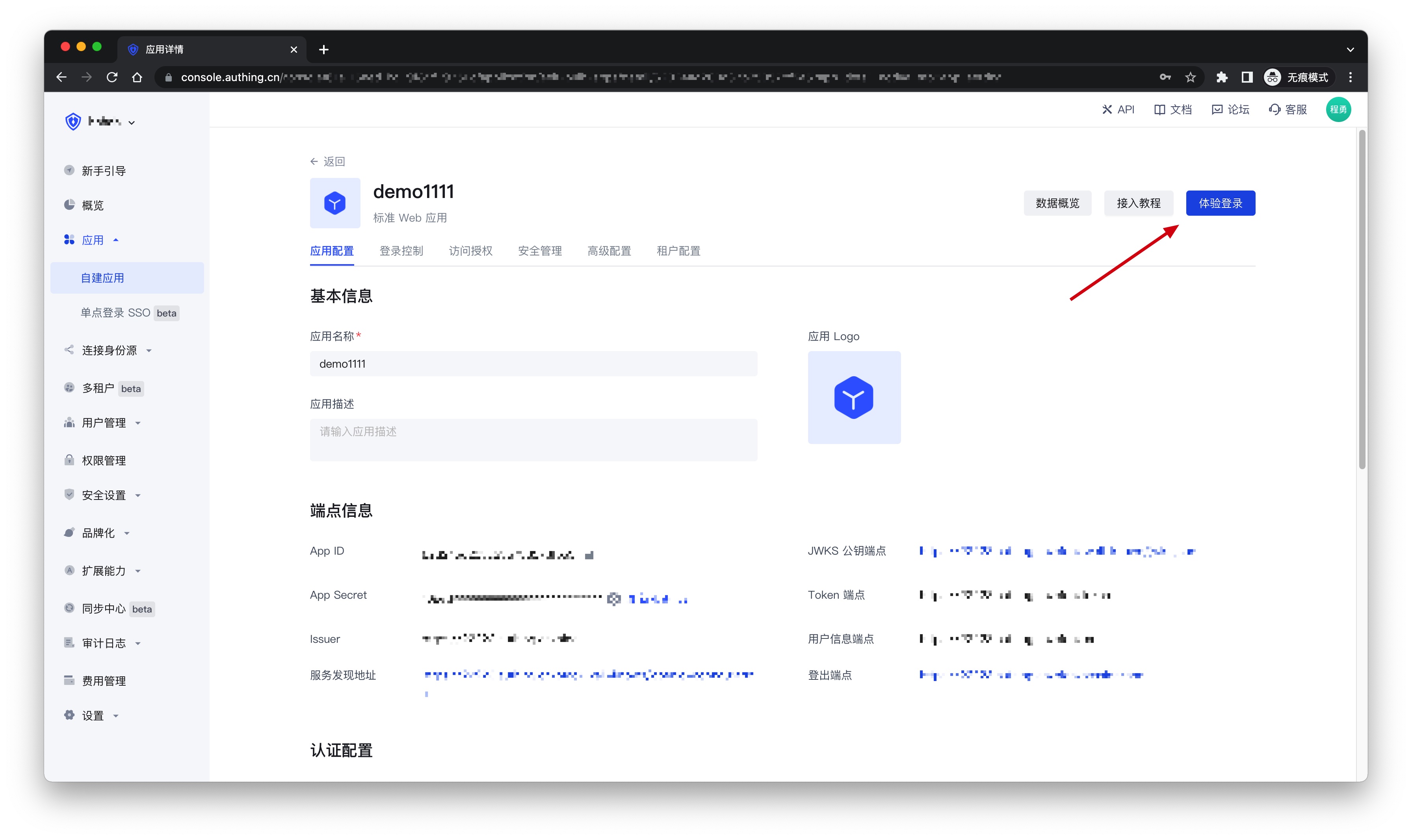 3.1 在 Authing 控制台创建一个应用,详情查看:如何在 Authing 创建一个应用