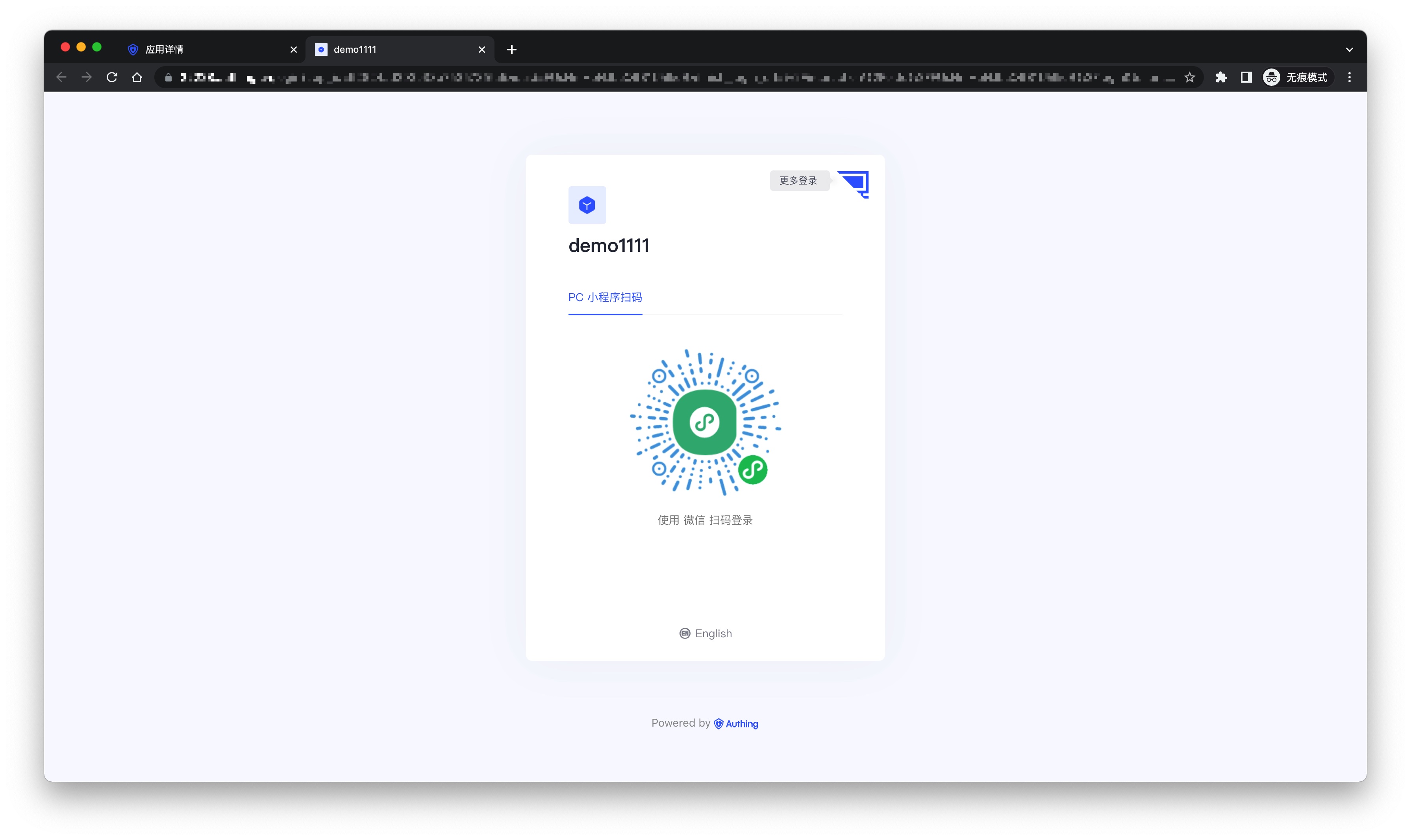 3.3 点击 Authing 控制台的应用 体验登录 按钮,在弹出的登录窗口体验 PC 小程序扫码 登录