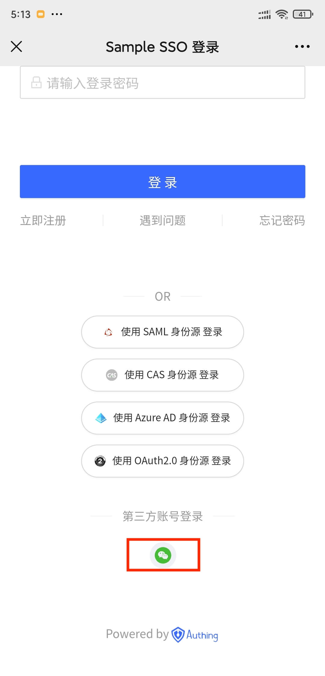 你可以在此获取示例代码:https://github.com/authing/wechat-eco-solution (opens new window),访问线上示例应用 (opens new window)。