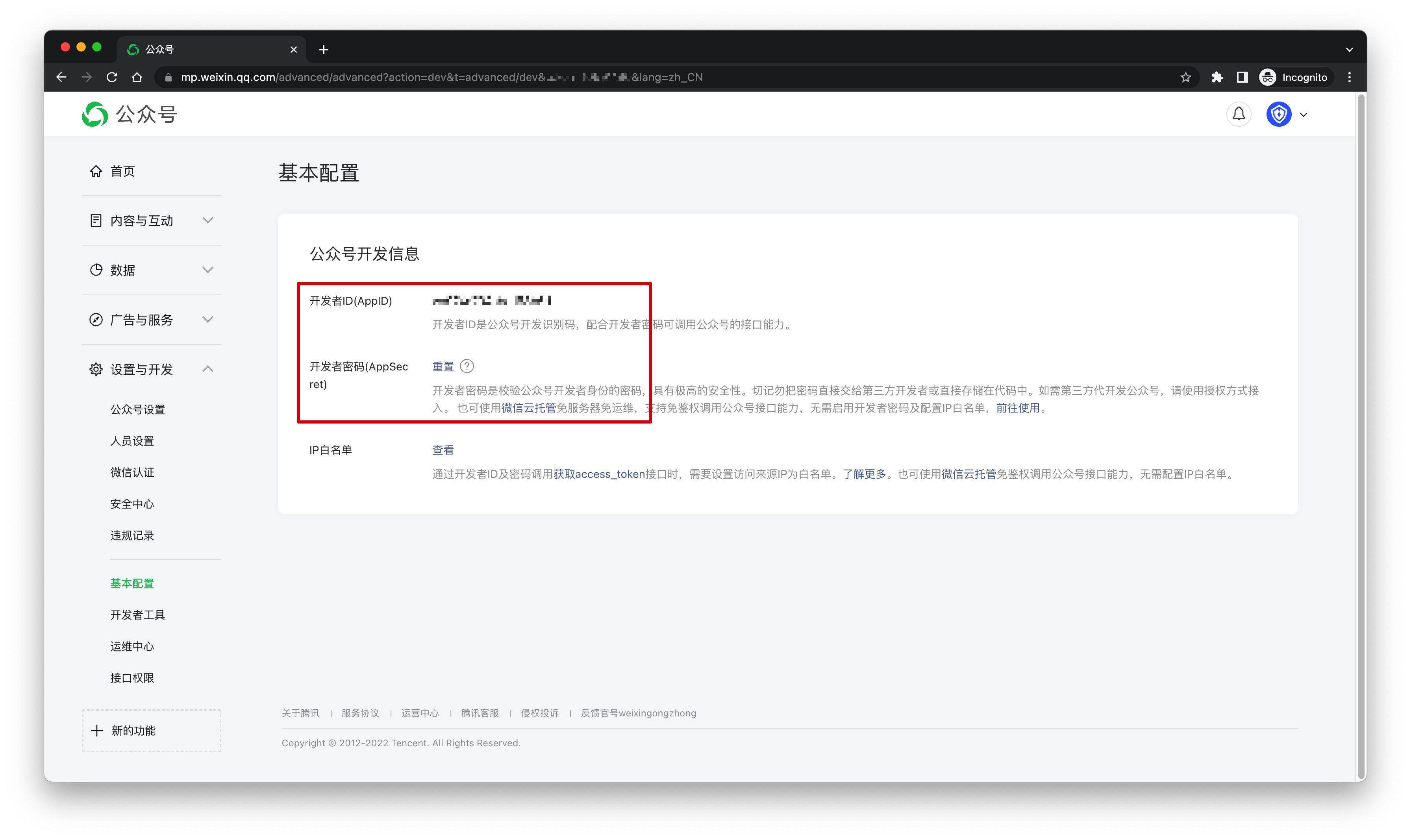 创建完成之后,你需要记录下该应用的 AppID 和 AppSecret,后面需要用到。