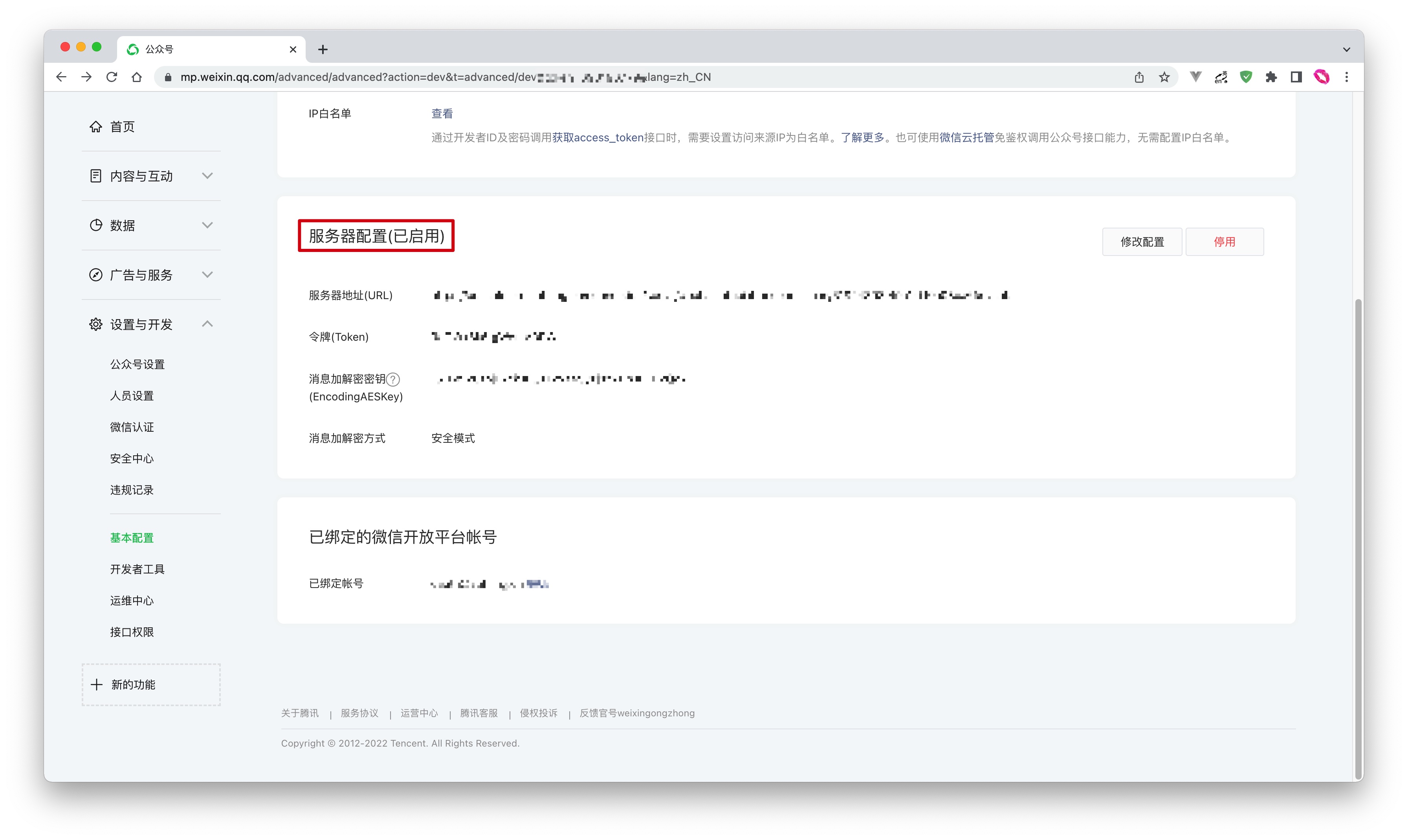 - 消息加解密方式:请根据业务需要选择,推荐使用安全模式。