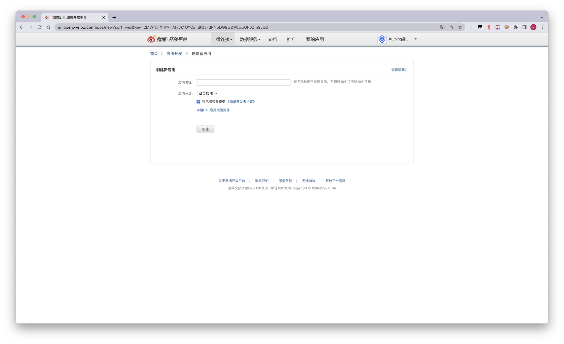 前往微博开放平台 (opens new window)按照官方指引创建一个网站应用。