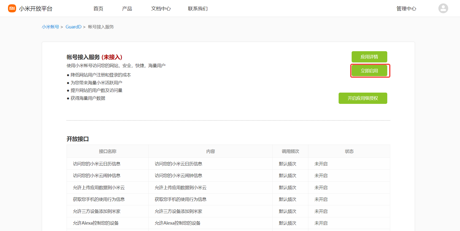 - 如果你还没有 小米 账号,请先前往 小米开放平台 (opens new window)上注册成为开发者。