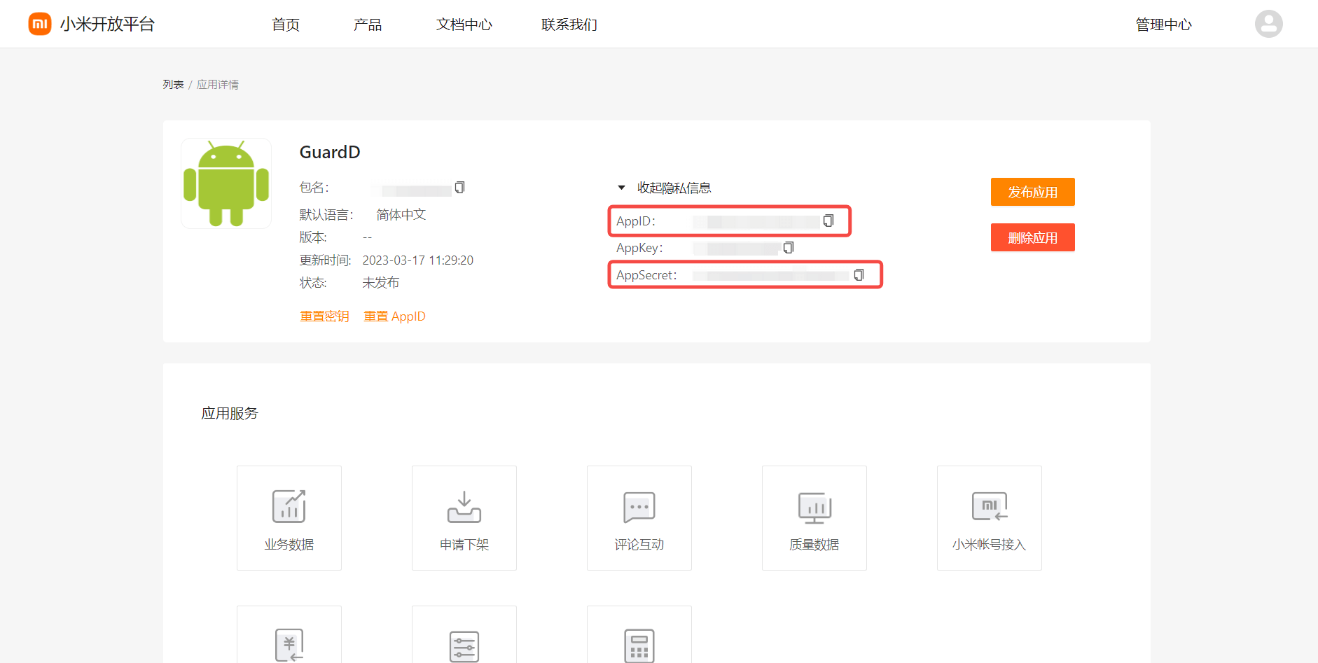 | AppID | 上一步获取的 小米 应用 ID。 |