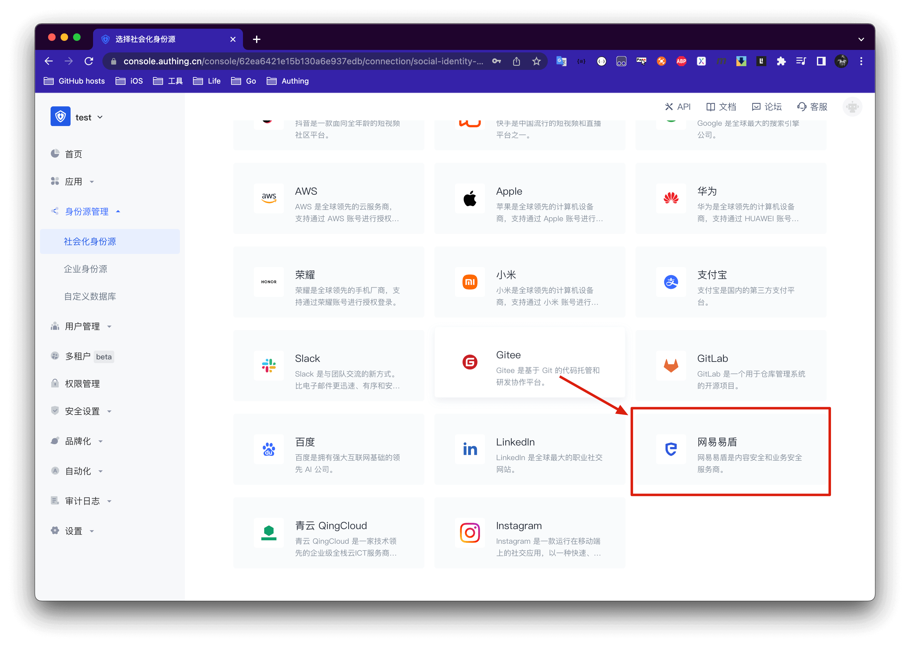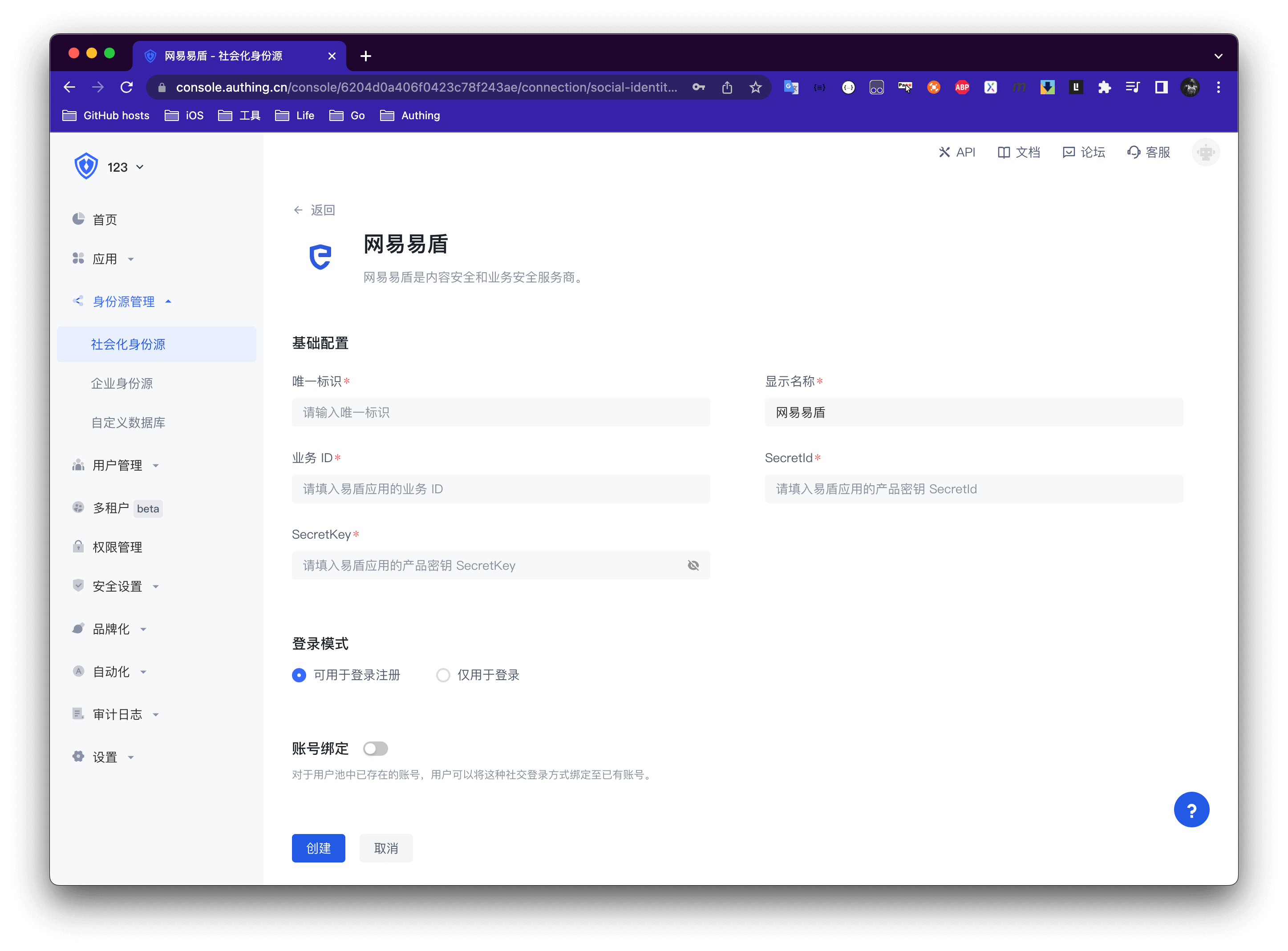 创建社会化身份源