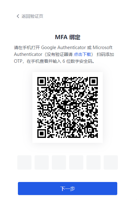 a. 点击 确定,打开 MFA 绑定扫码窗口。
