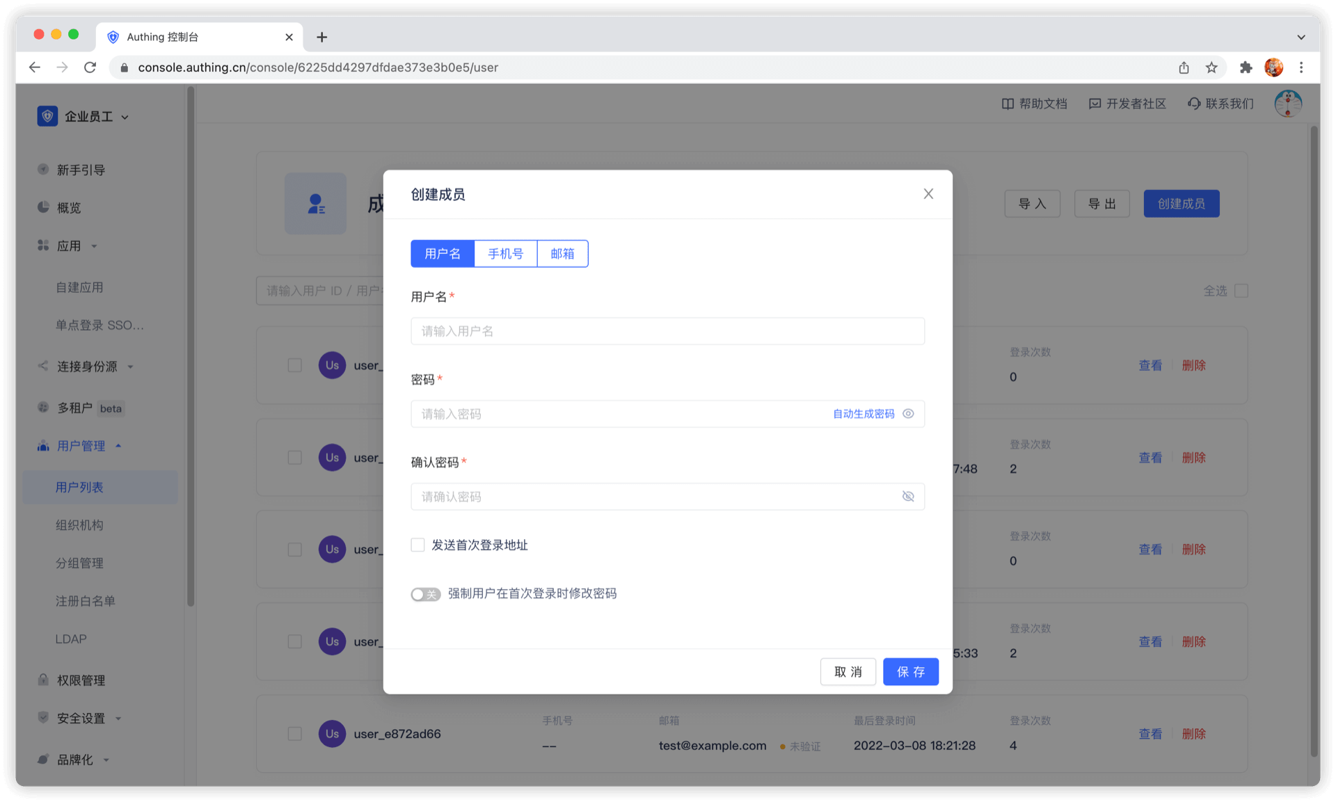 管理员创建账号