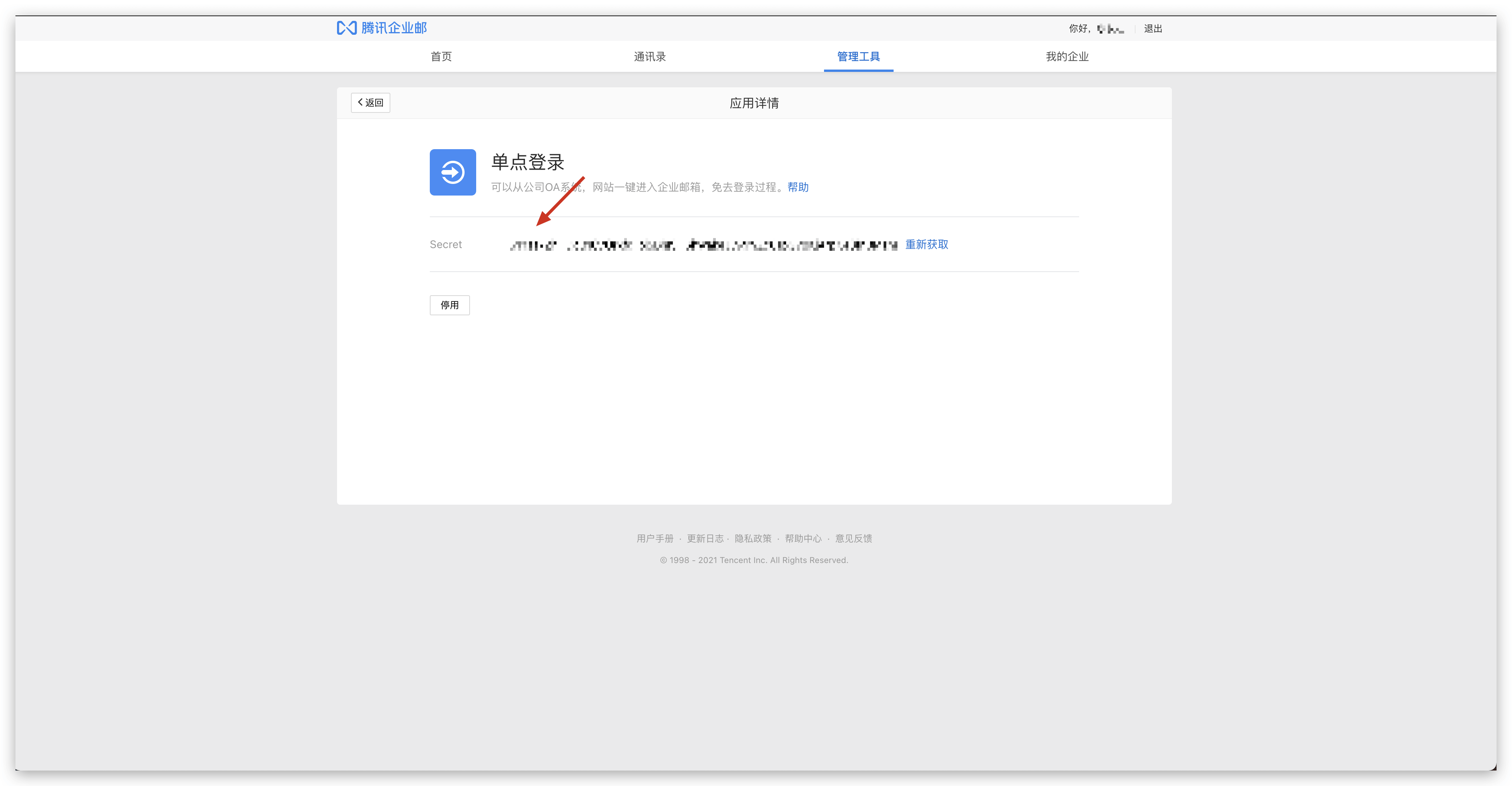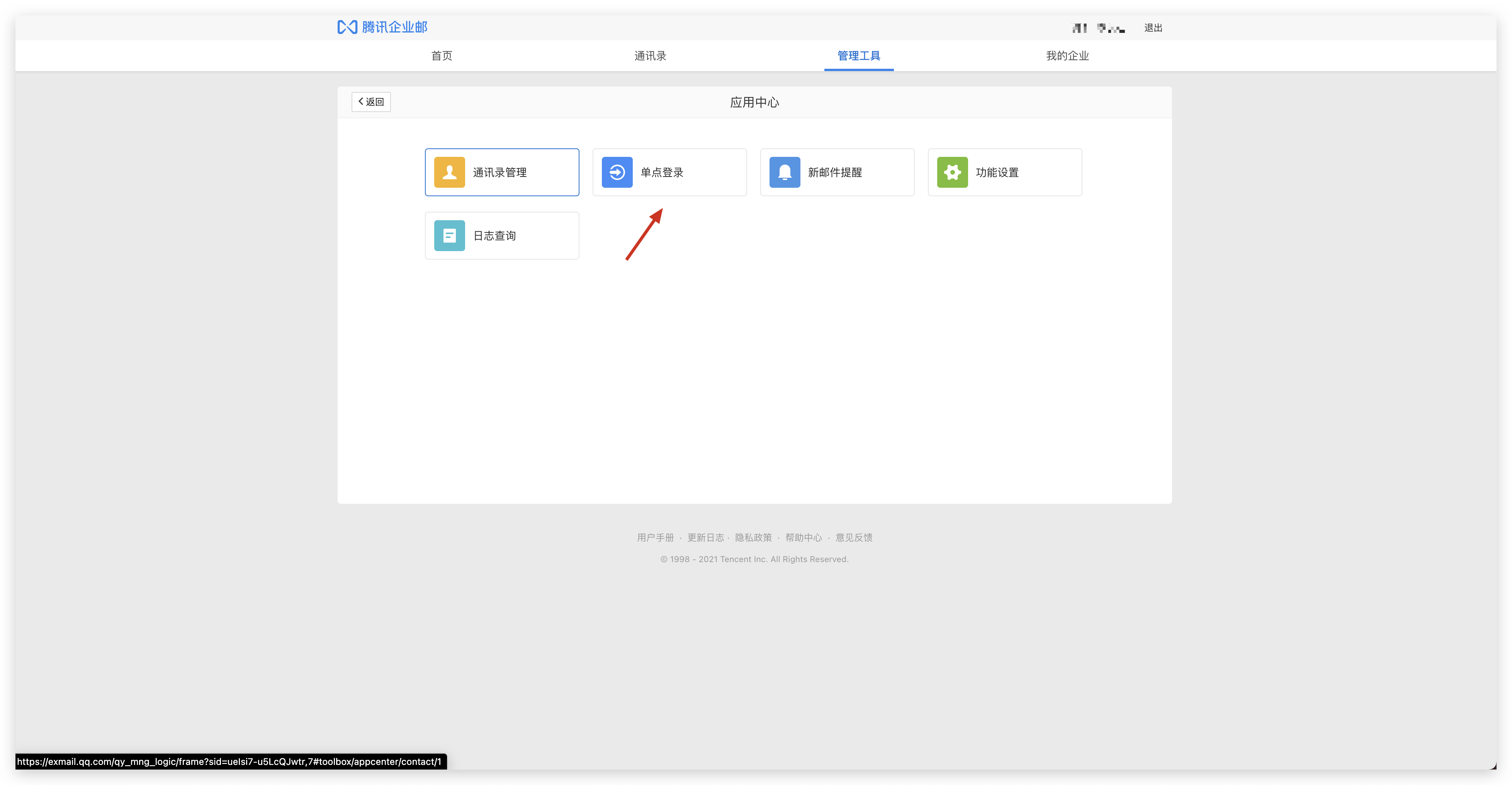 以管理员身份登录腾讯企业邮箱,点击 管理工具 -> 应用互联