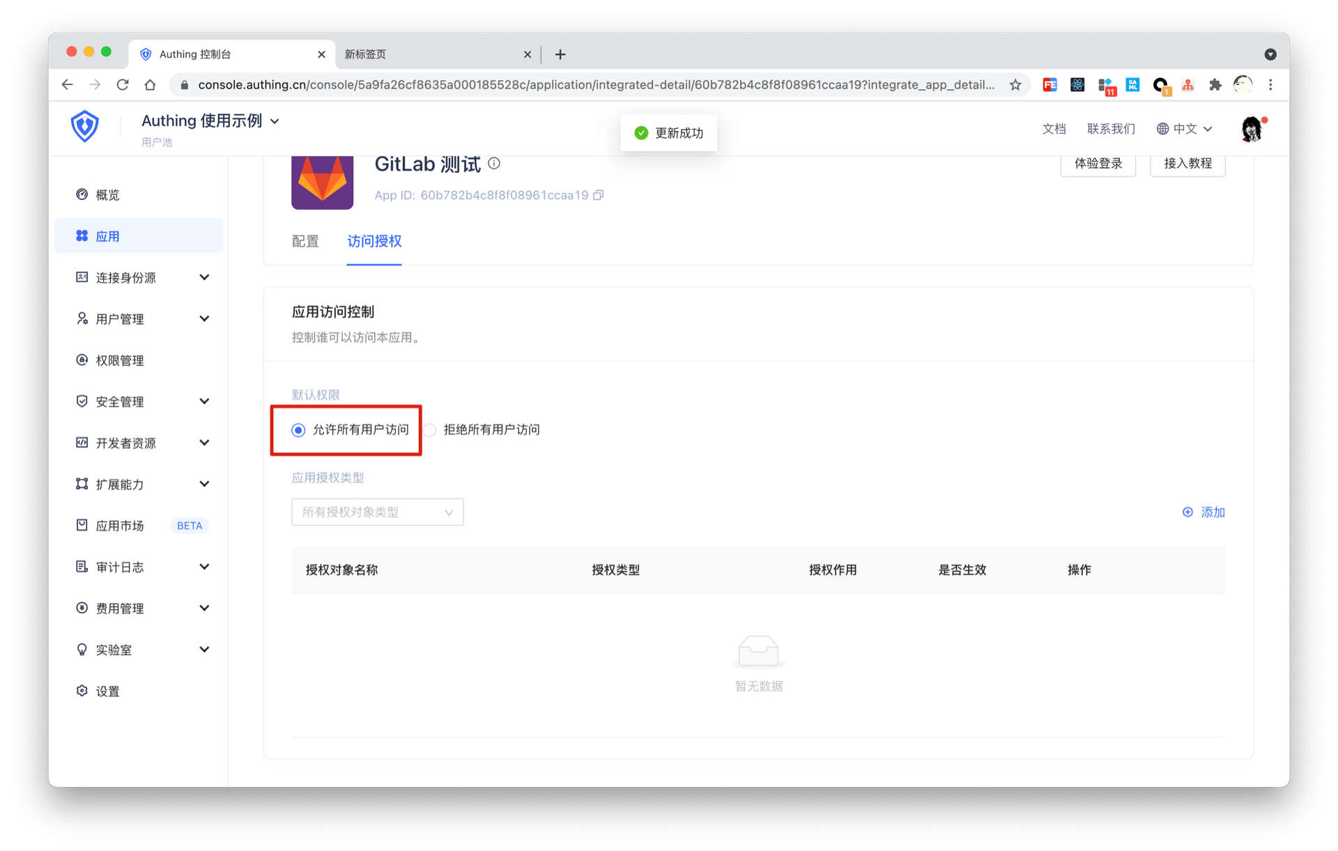 点击完成,在访问授权页点击「允许所有用户访问」。