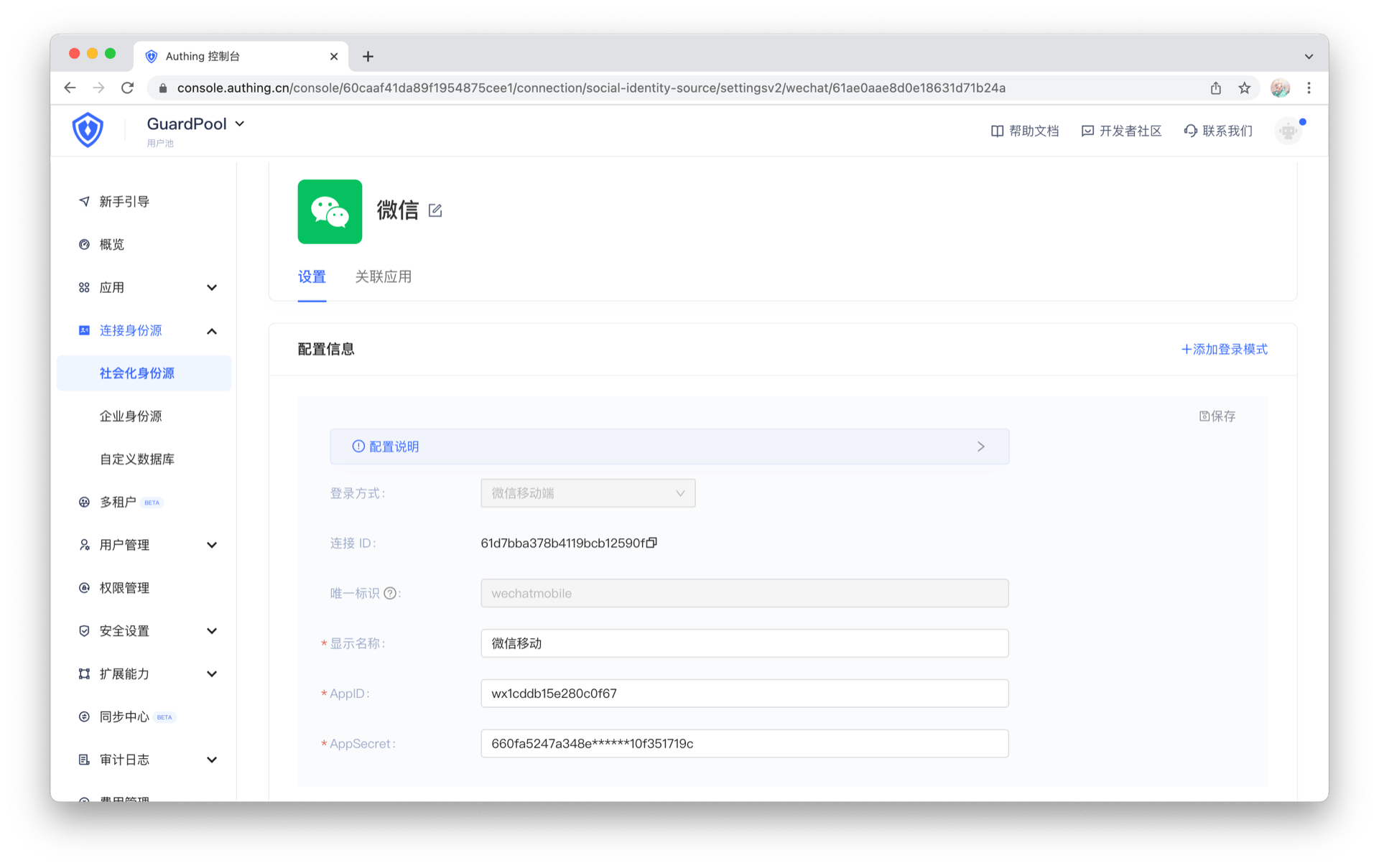 - 在 Authing 管理控制台进行配置
