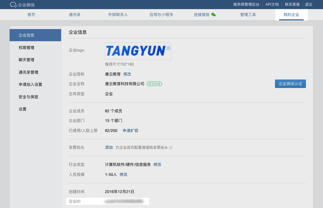 CorpID:企业微信管理控制平台注册的应用 CorpID