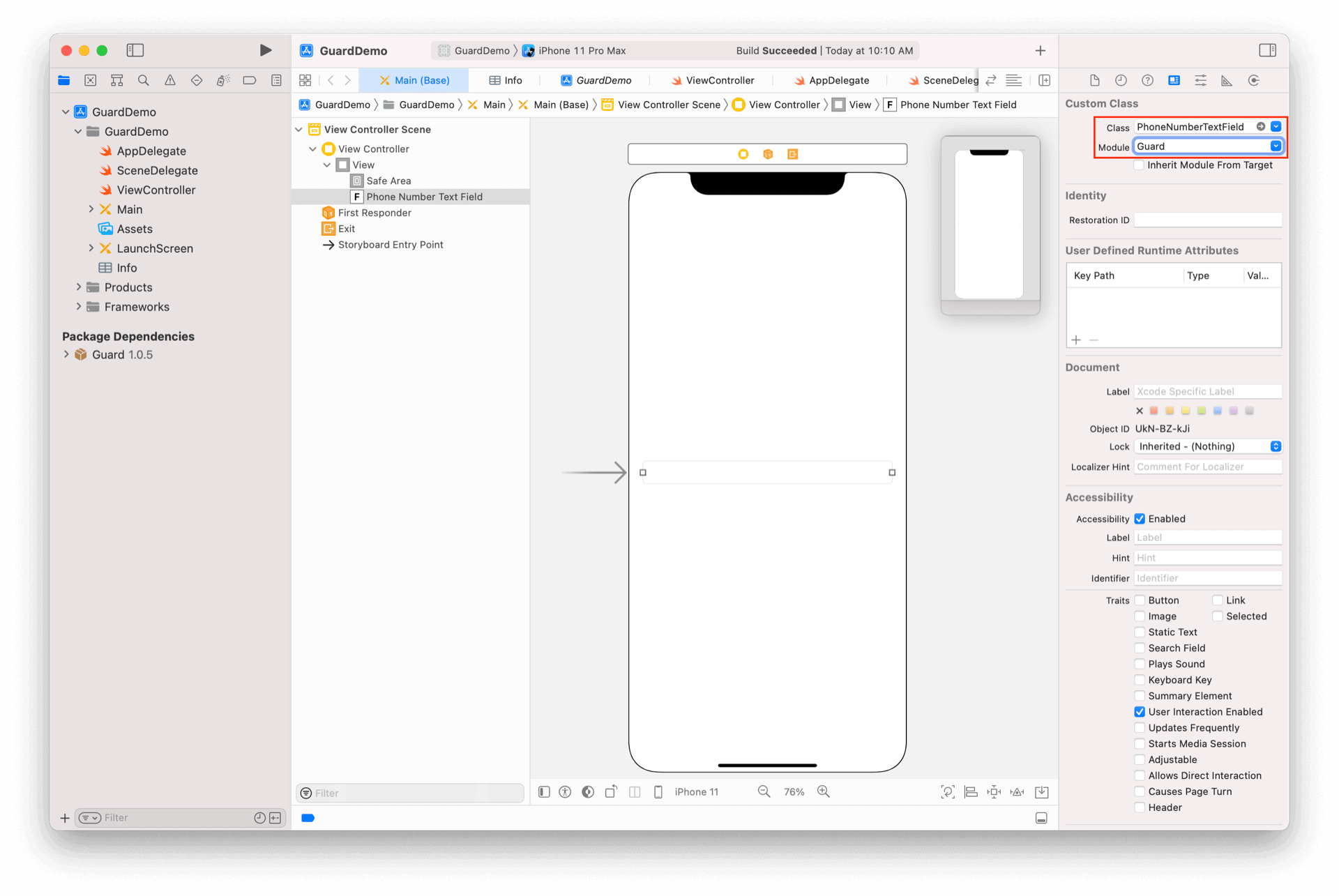 放置一个 TextField,并将其类型改为 PhoneNumberTextField