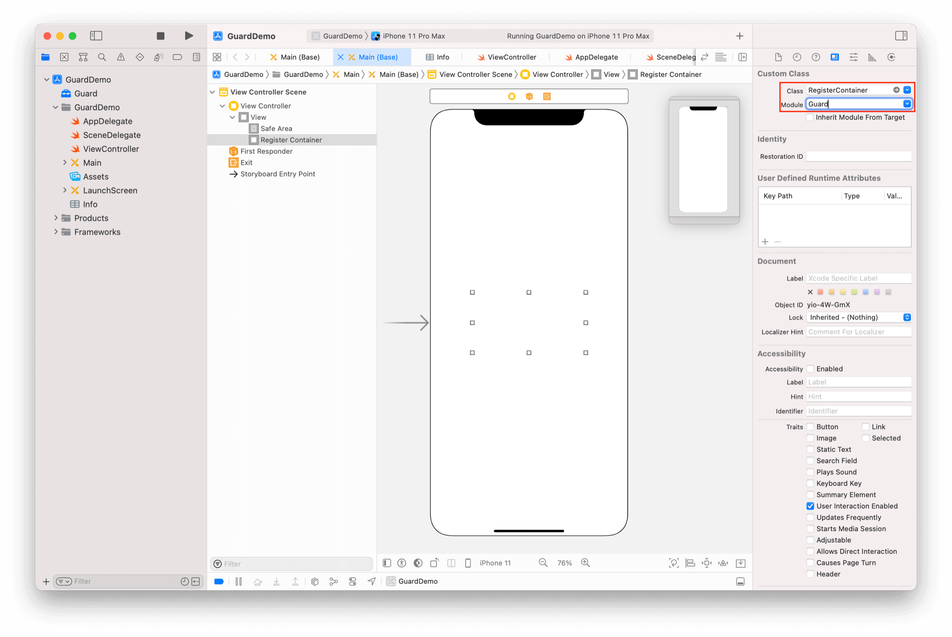 放置一个 UIView,并将其类型改为 RegisterContainer