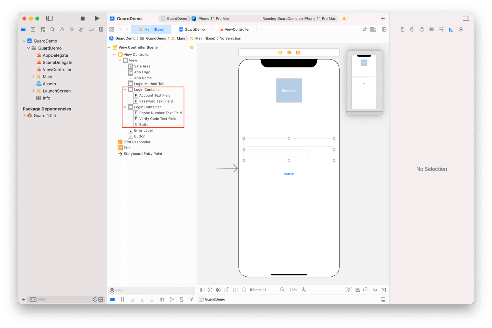 将 PhoneNumberTextField、VerifyCodeTextField、GetVerifyCodeButton 放到第二个 LoginContainer 里面。